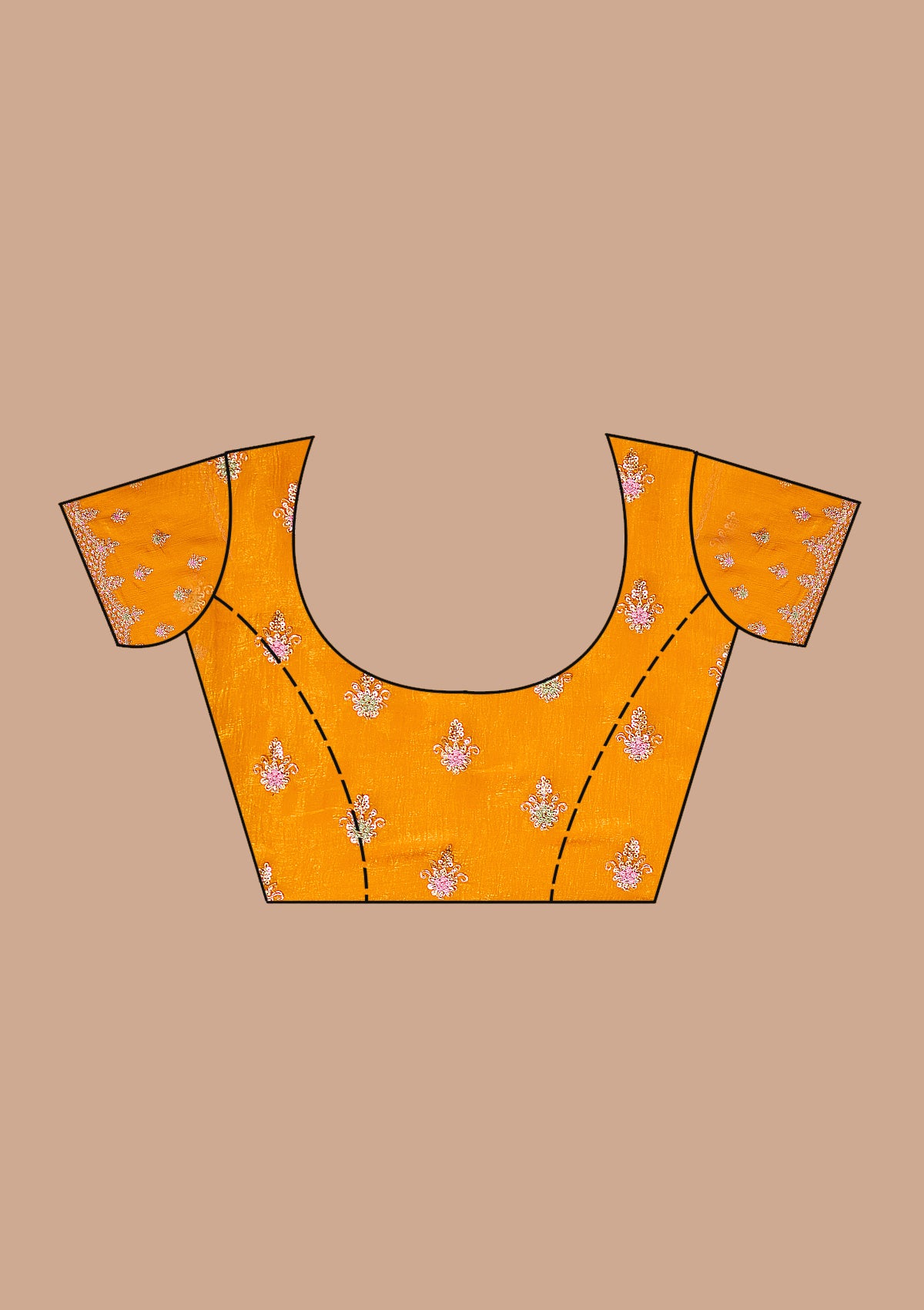 Mustard Saree in Tissue fabric. The Saree is elevated with Cording embroidery. It comes with an Unstitched blouse. Comes with the Koskii promise of premium quality.