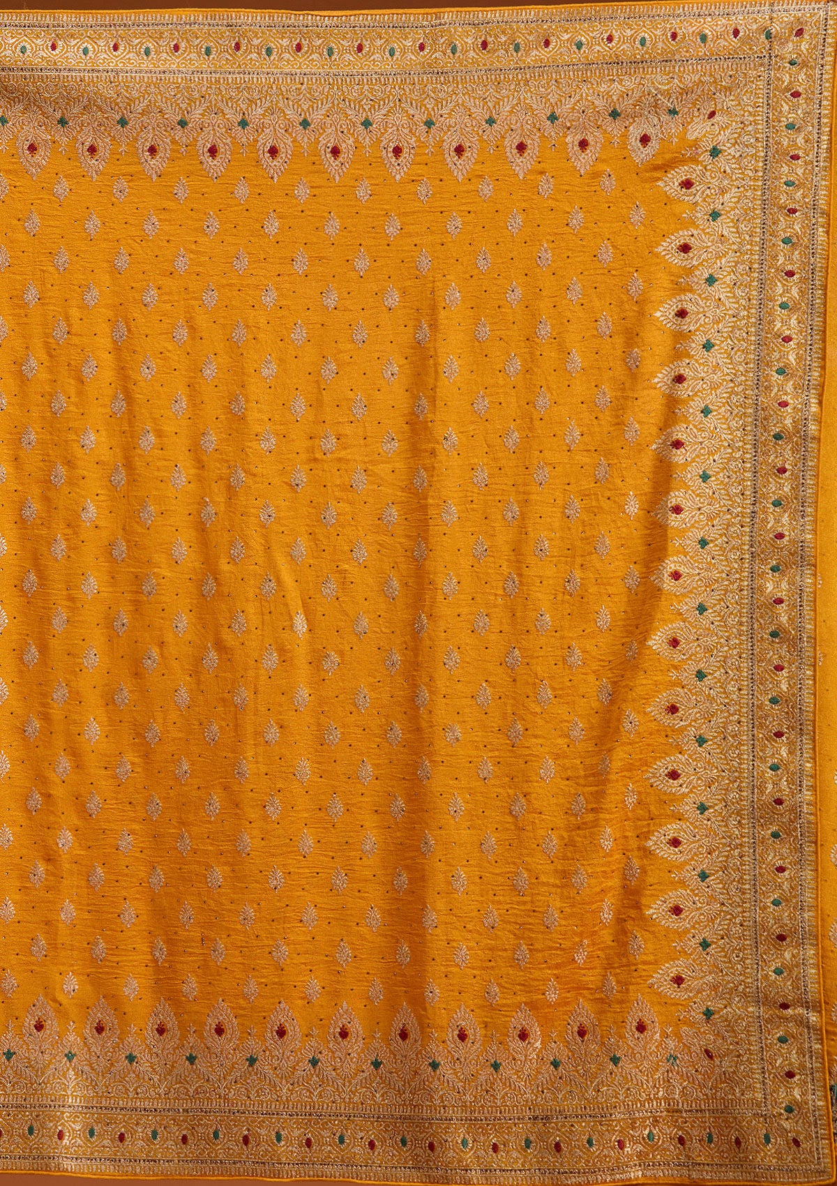 Mustard Zariwork (Gold) Soft Raw Silk Saree