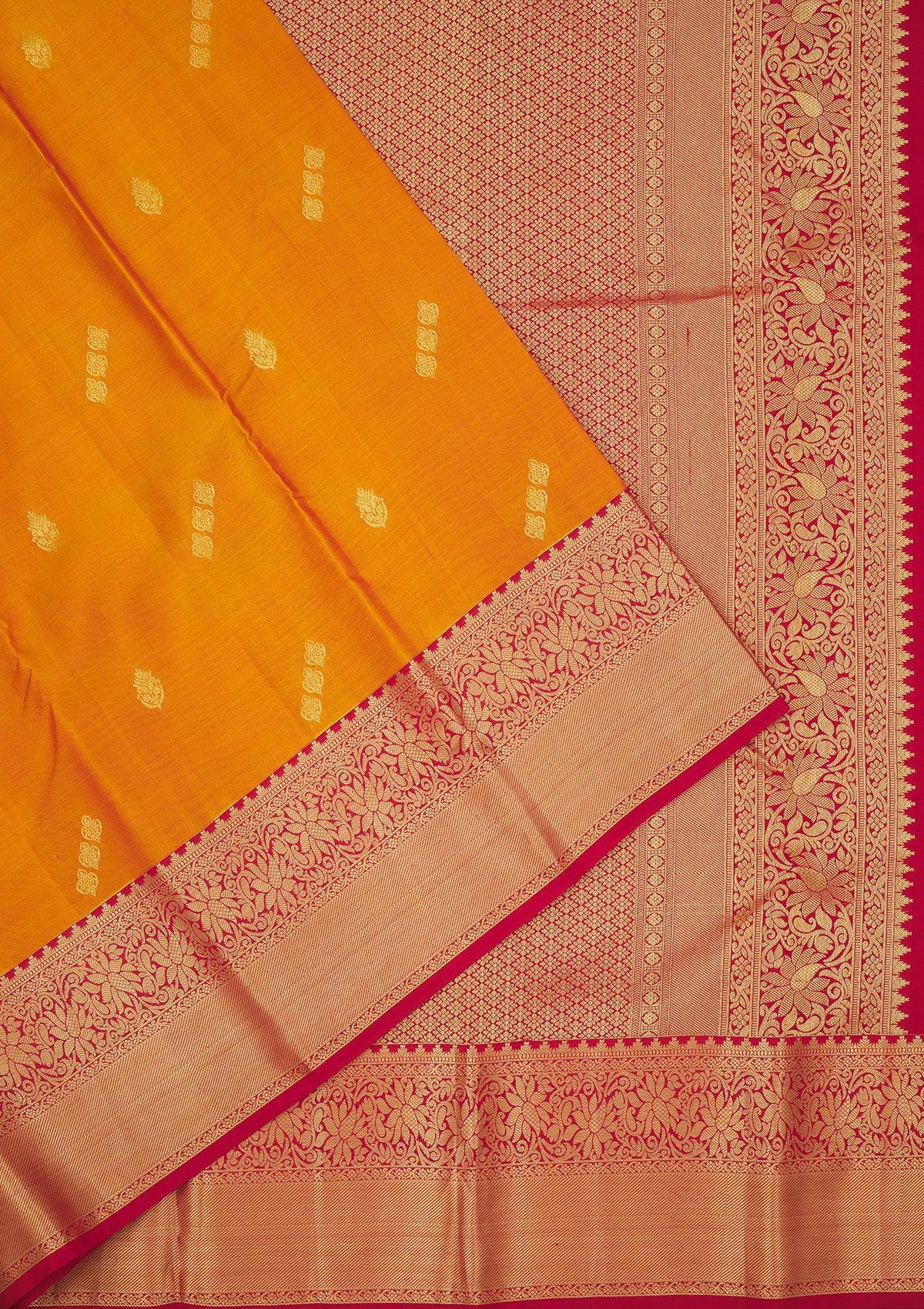 Mustard Saree in Pure Silk fabric. The Saree is elevated with Zariwork embroidery. It comes with an Unstitched blouse. Comes with the Koskii promise of premium quality.