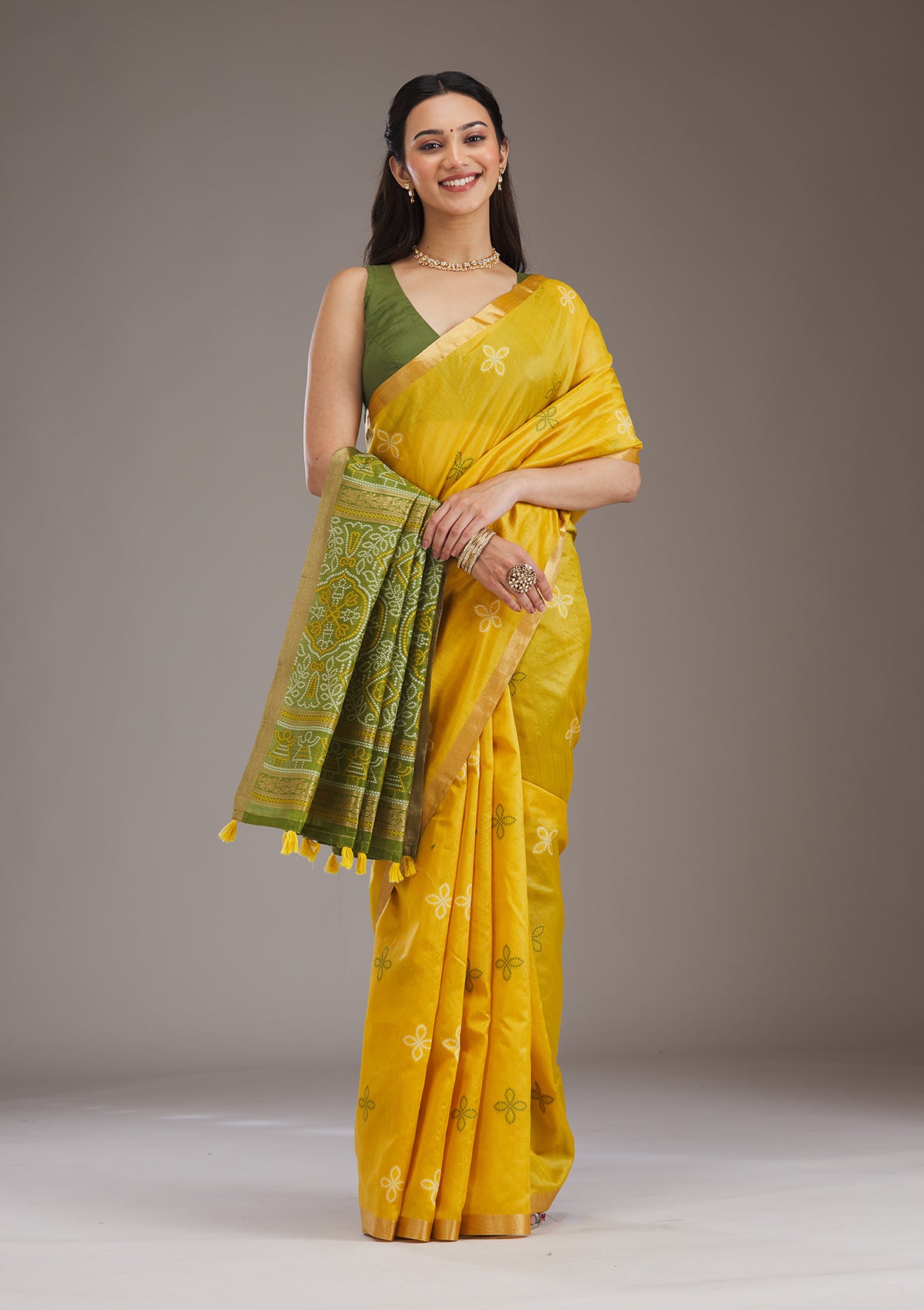 Mustard Saree in Tissue fabric. The Saree is elevated with Zariwork embroidery. It comes with an Unstitched blouse. Comes with the Koskii promise of premium quality.