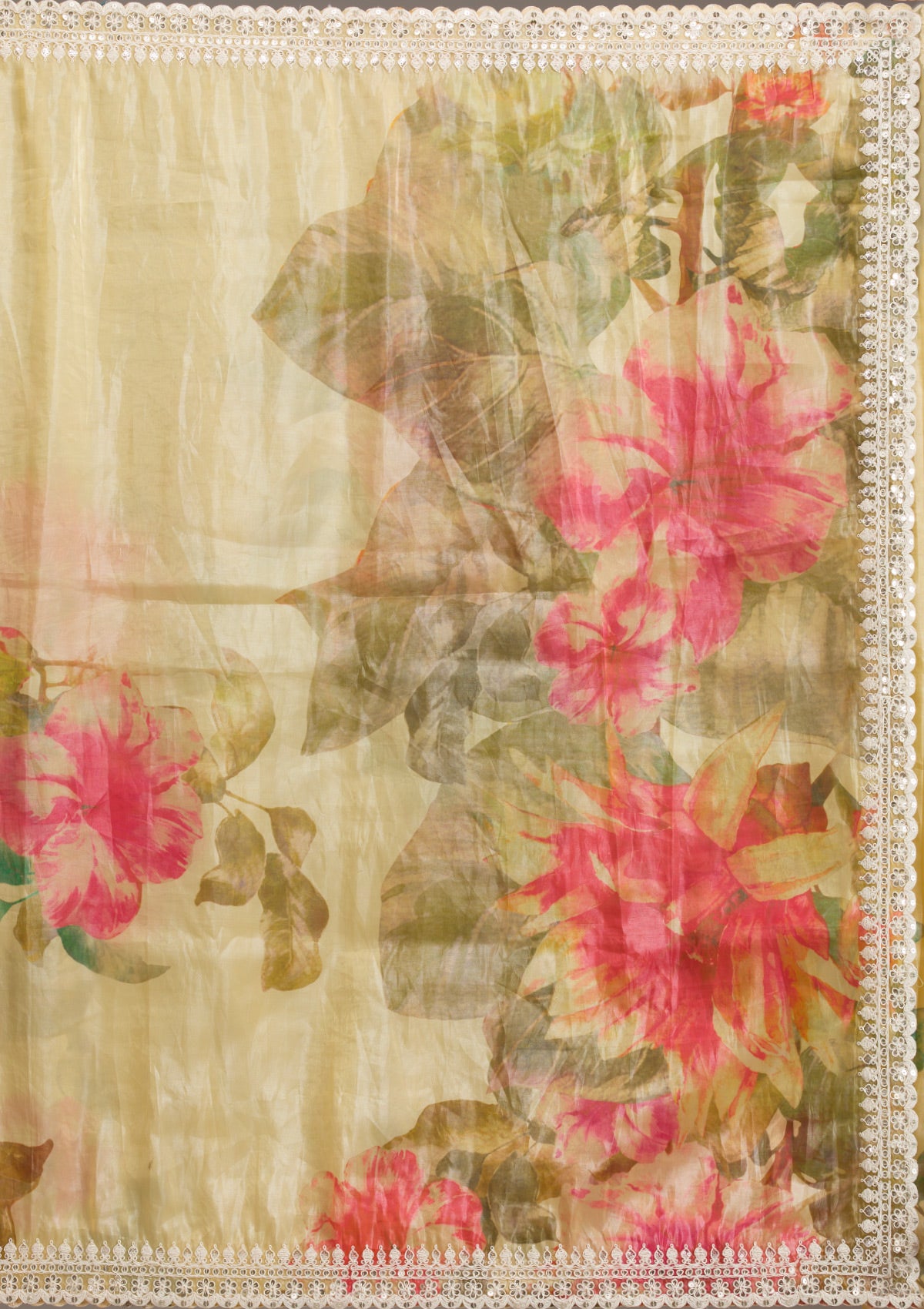 Yellow Saree in Tissue fabric The Saree is elevated with Prints It comes with an Unstitched blouse Comes with the Koskii promise of premium quality.