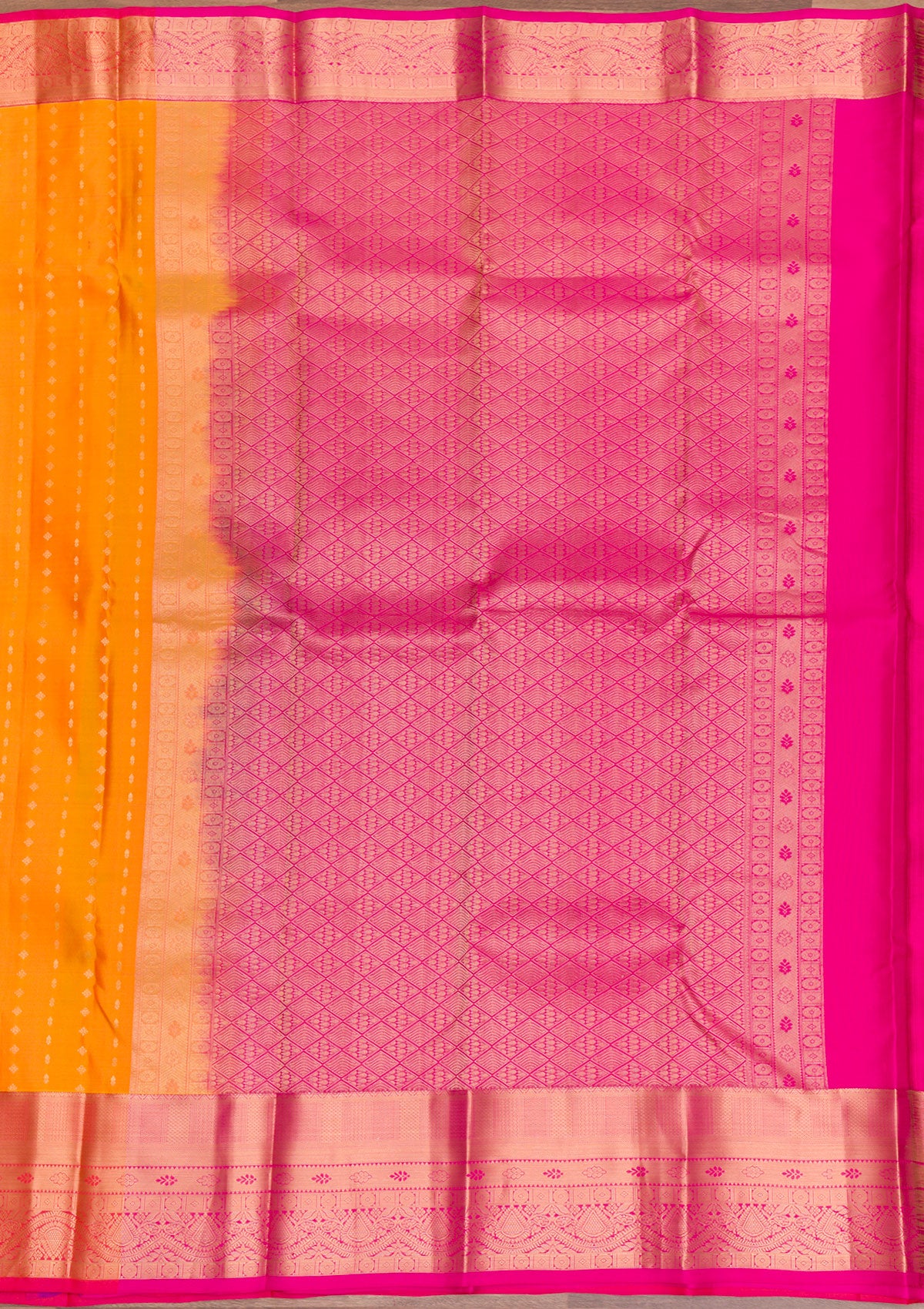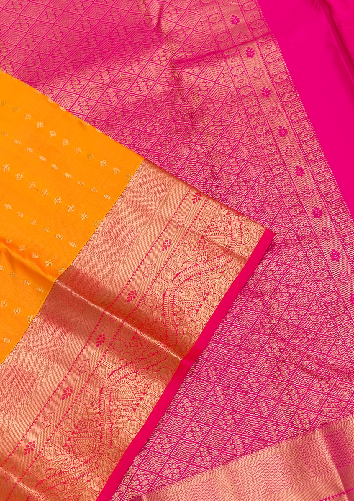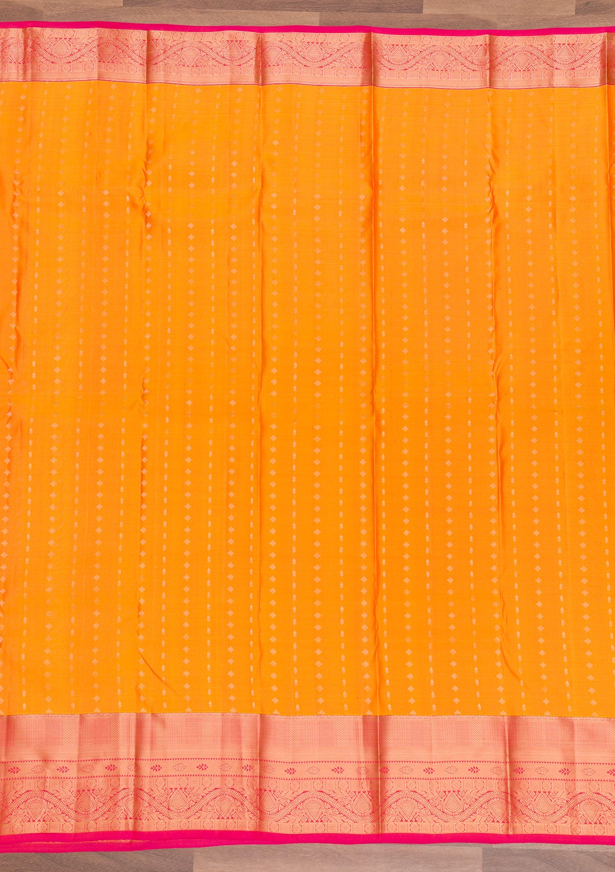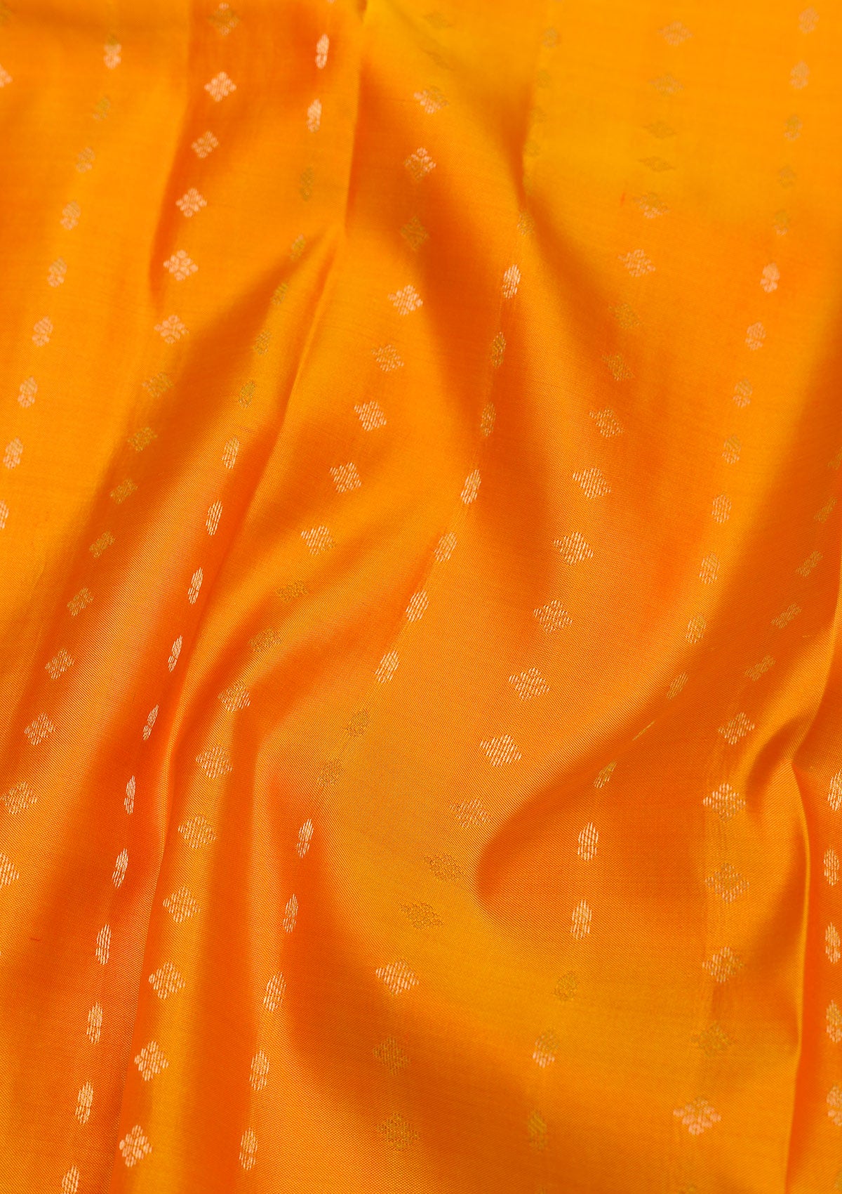 Yellow Saree in Pure Silk fabric. The Saree is elevated with Zariwork embroidery. It comes with an Unstitched blouse. Comes with the Indian Silk Mark certification.