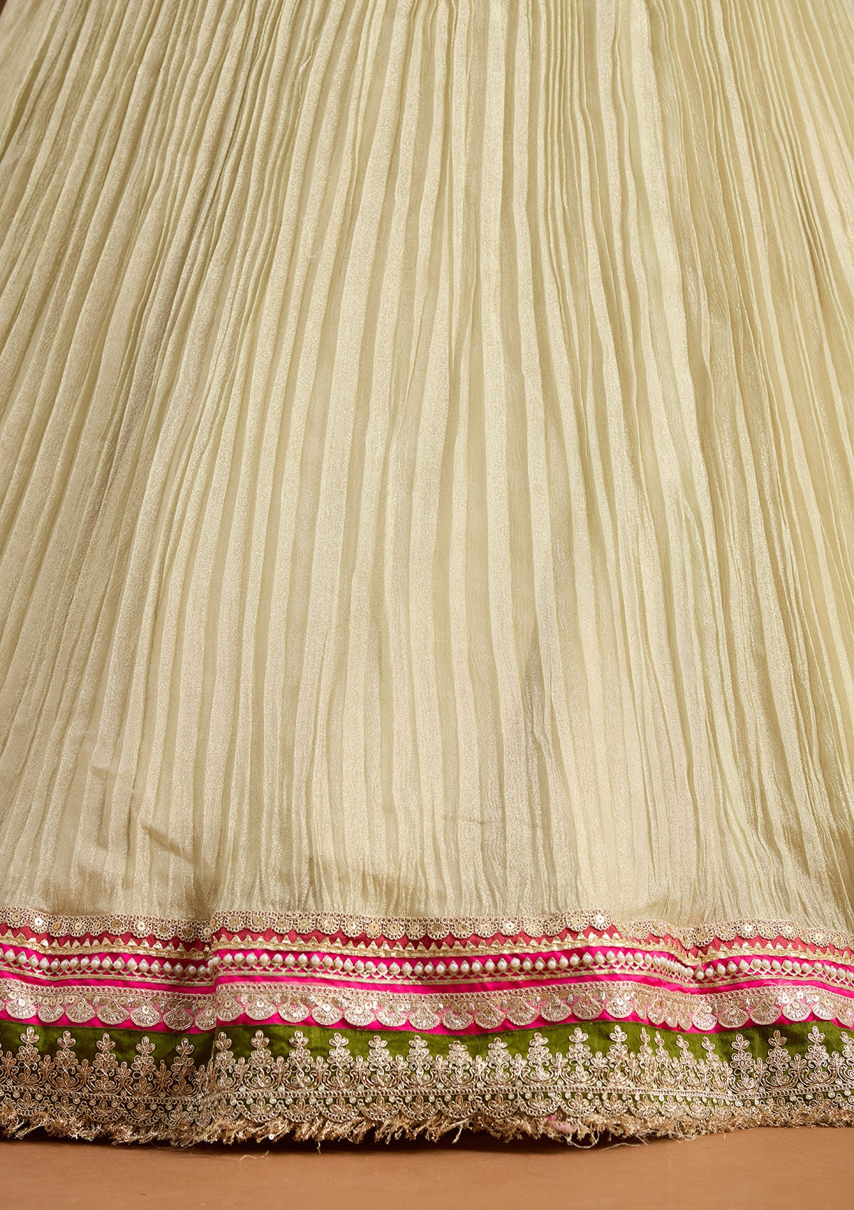 Beige Threadwork Georgette Readymade Lehenga