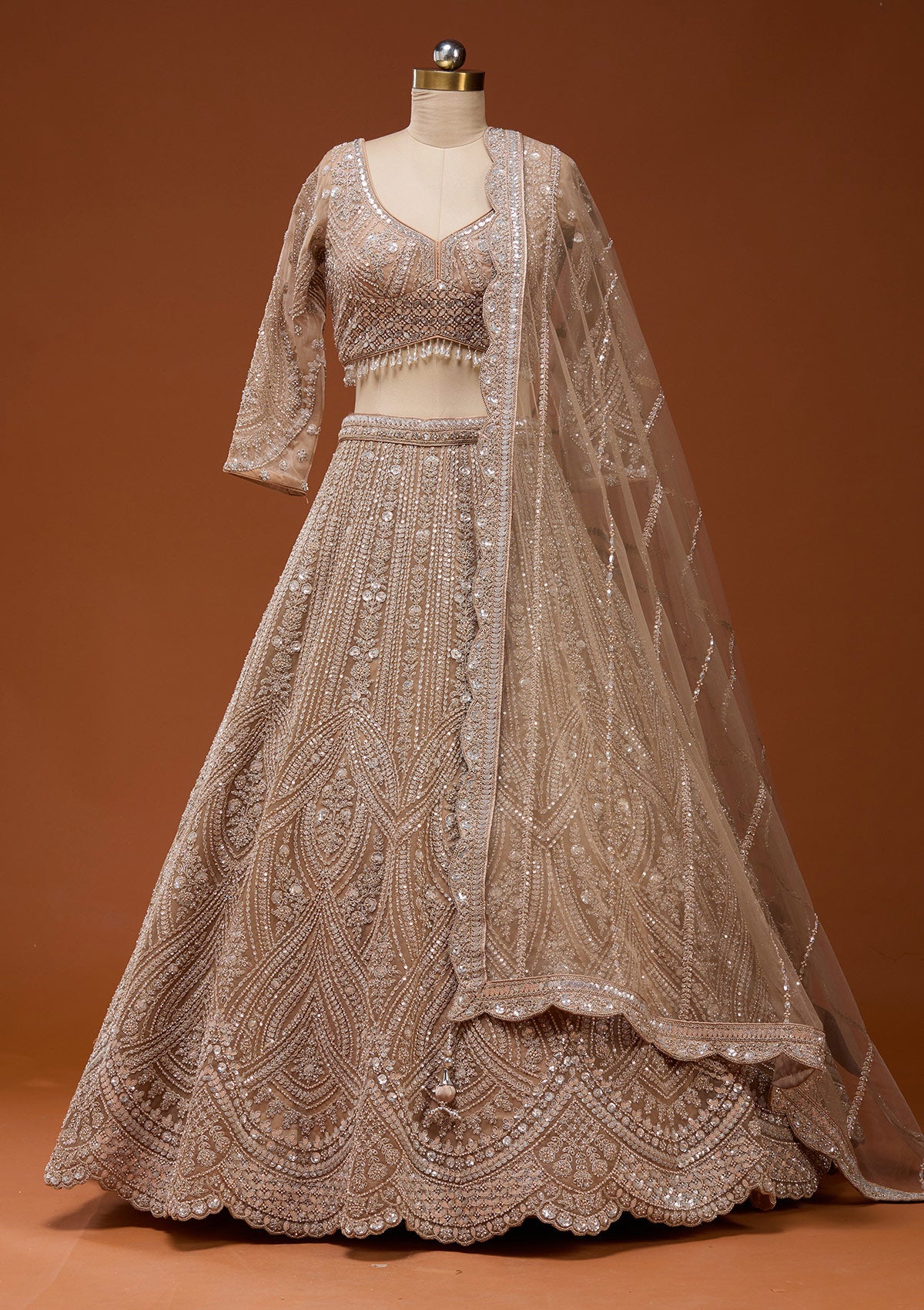Beige Zariwork (Silver) Net Readymade Lehenga