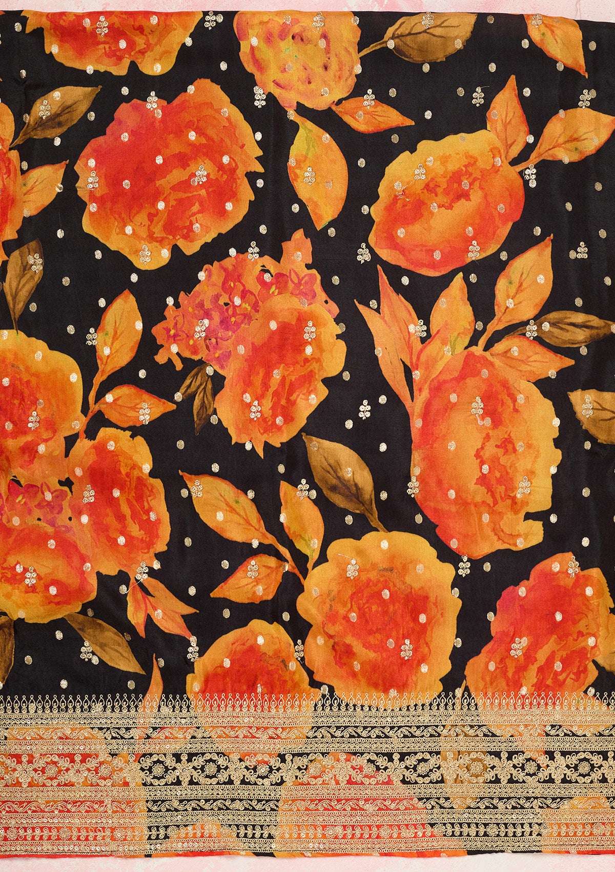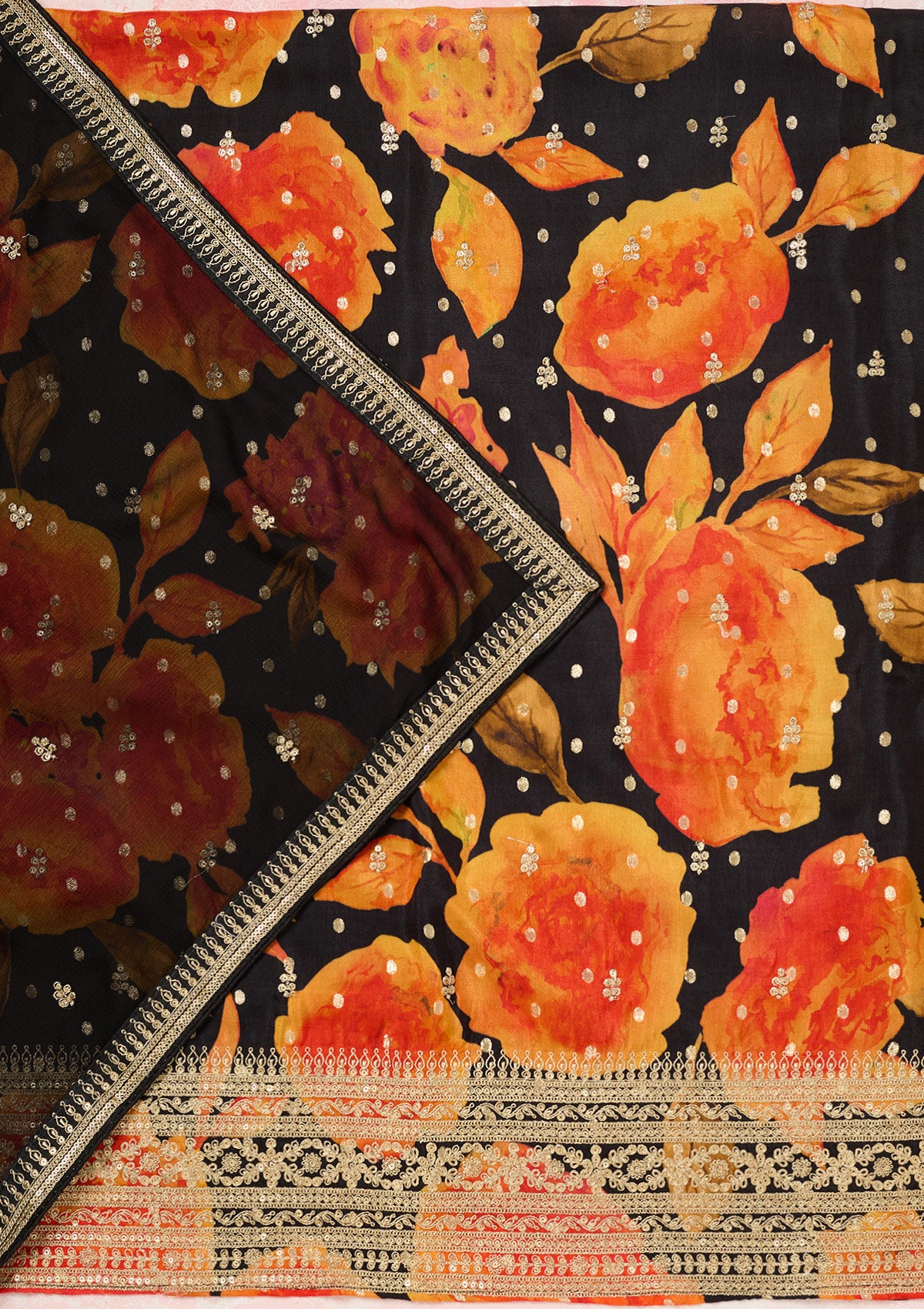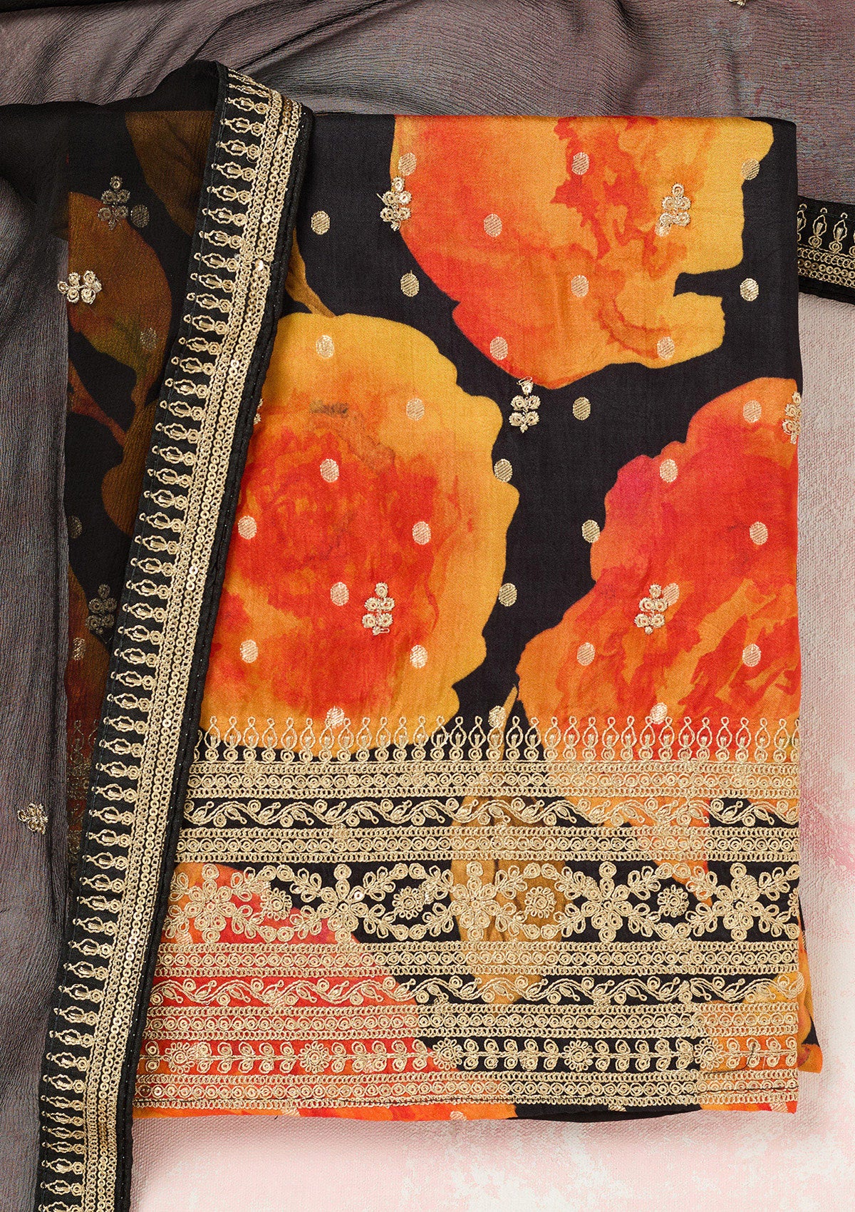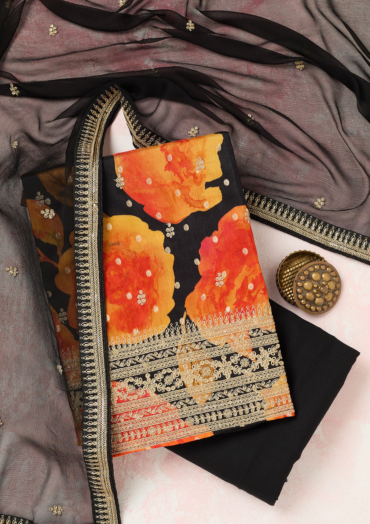 Black Zariwork Dola Silk Unstitched Salwar Suit