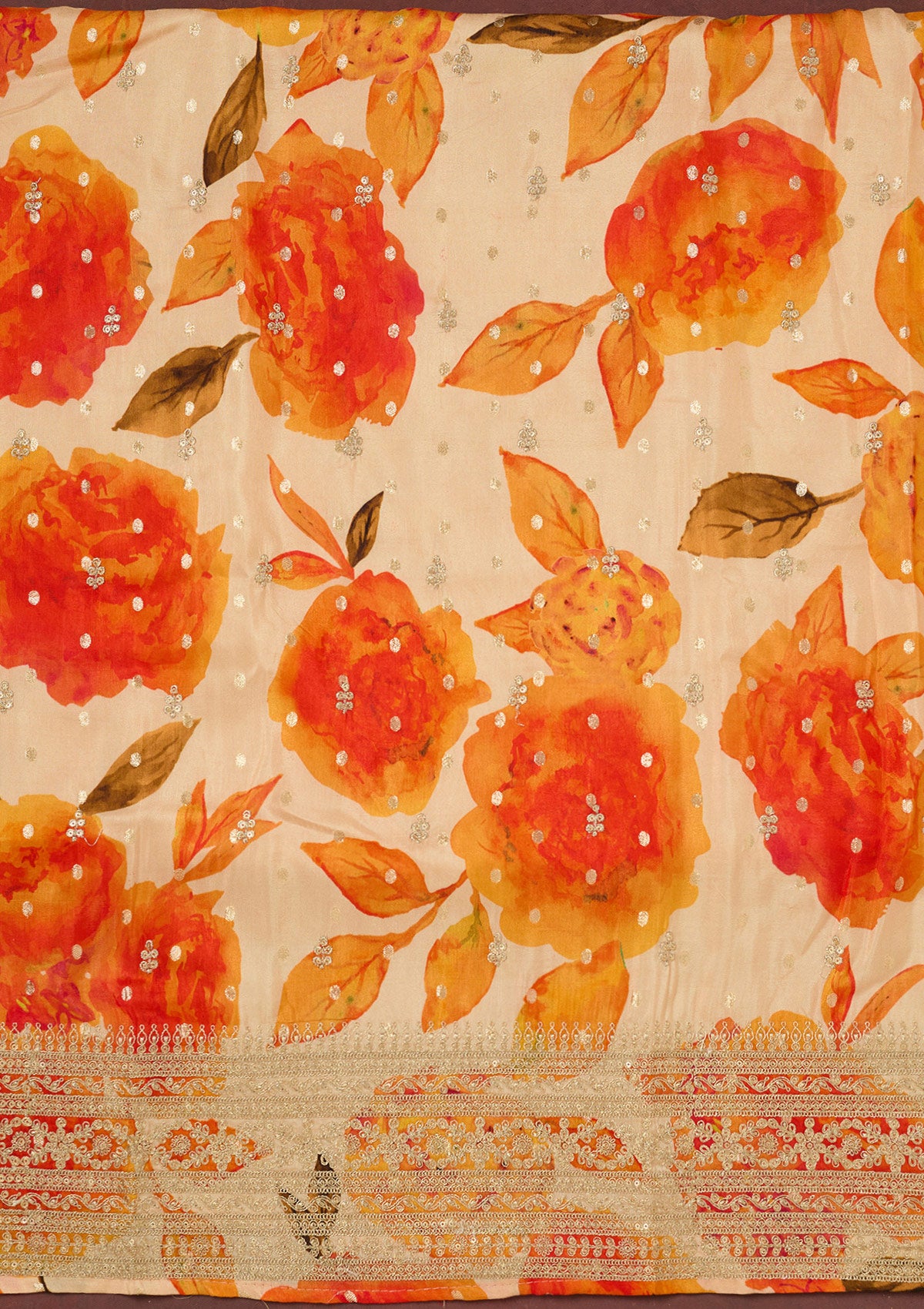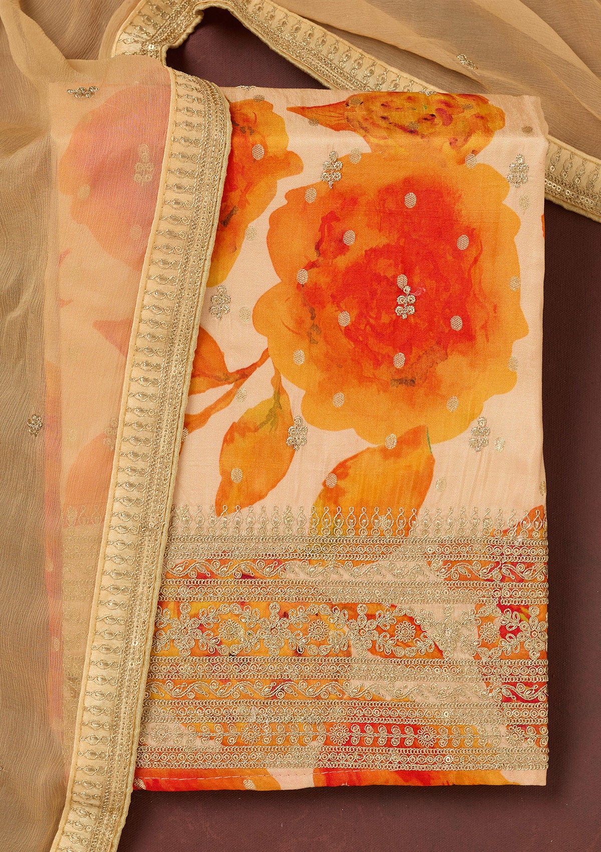 Cream Zariwork Dola Silk Unstitched Salwar Suit
