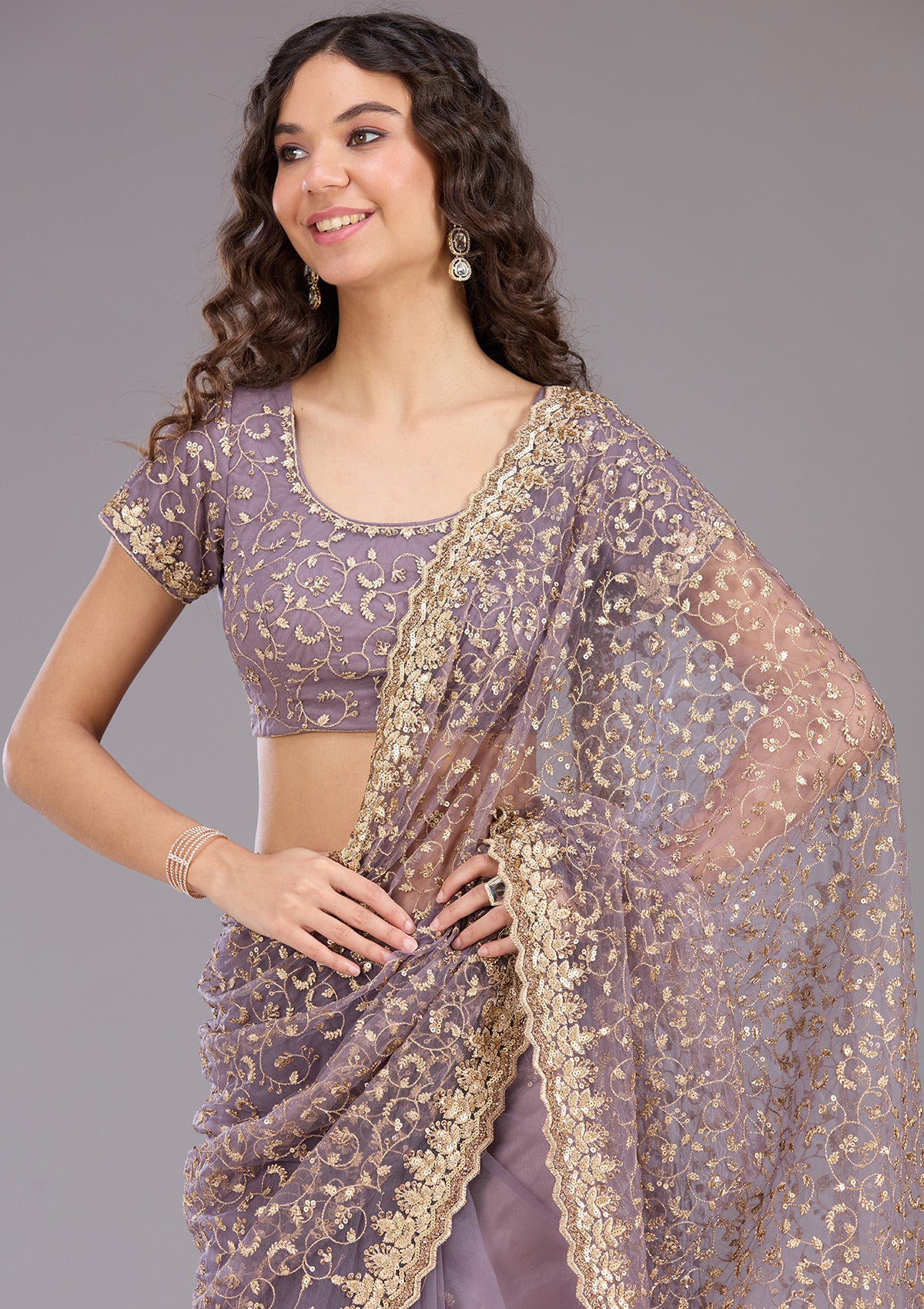 Onion Pink Saree in Tissue fabric. The Saree is elevated with Cutdana embroidery. It comes with an Unstitched blouse. Comes with the Koskii promise of premium quality.