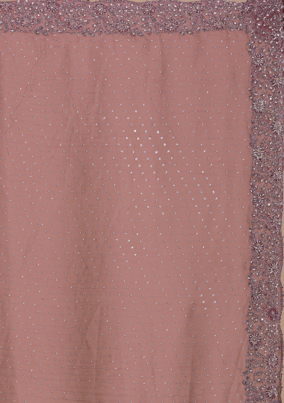 Lavender Saree in Crepe fabric The Saree is elevated with Stonework embroidery It comes with an Unstitched blouse Comes with the Koskii promise of premium quality.