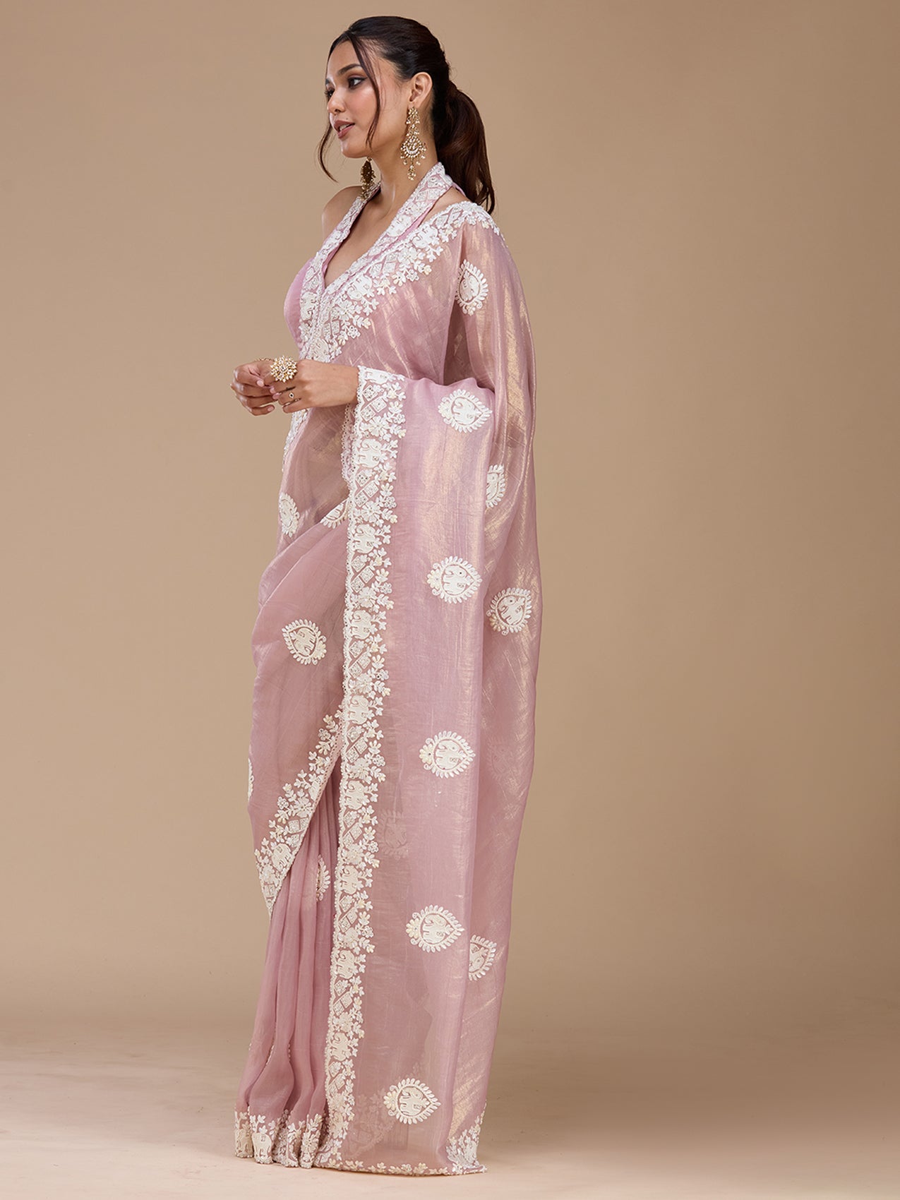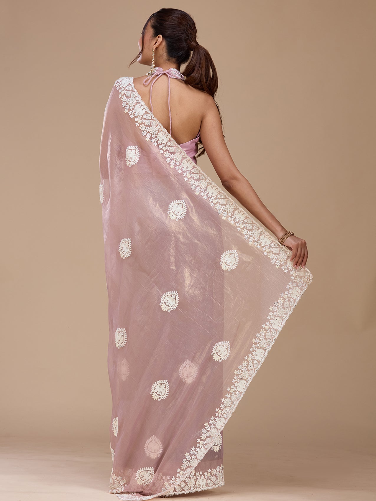 Mauve Pearlwork Tissue Saree