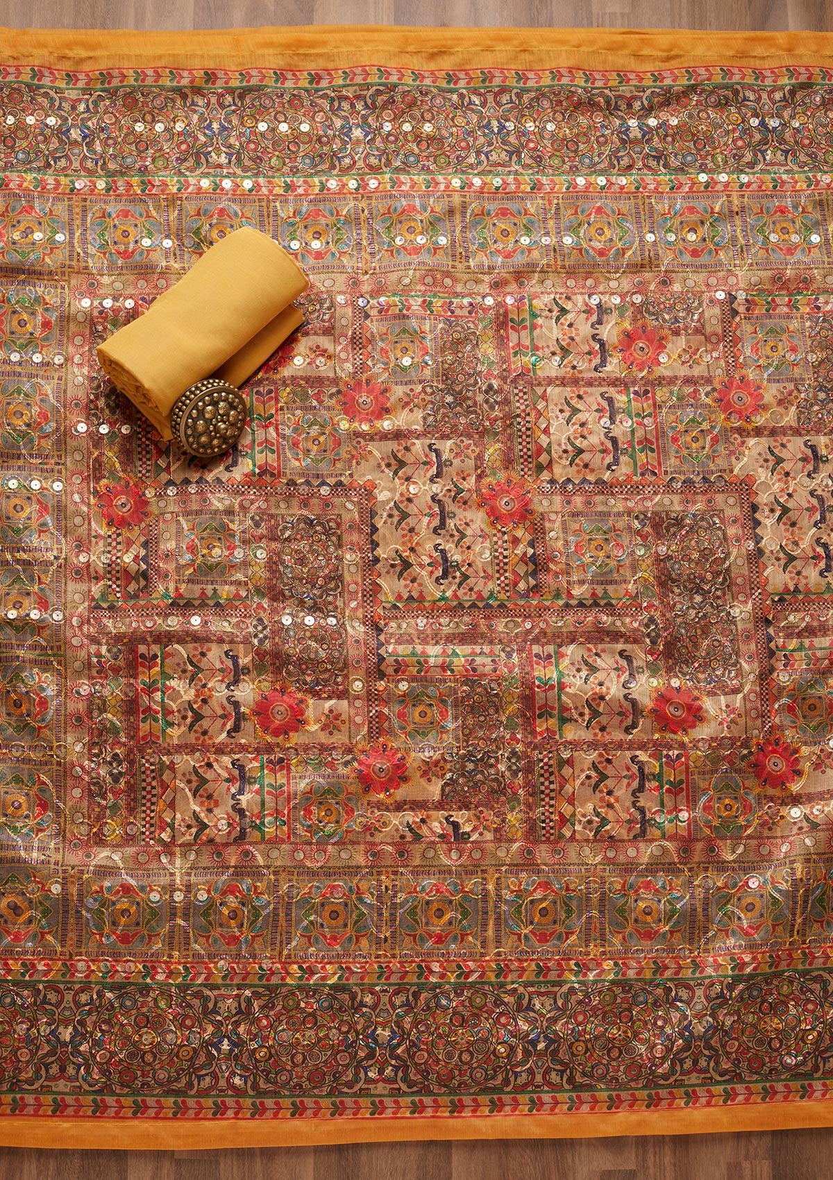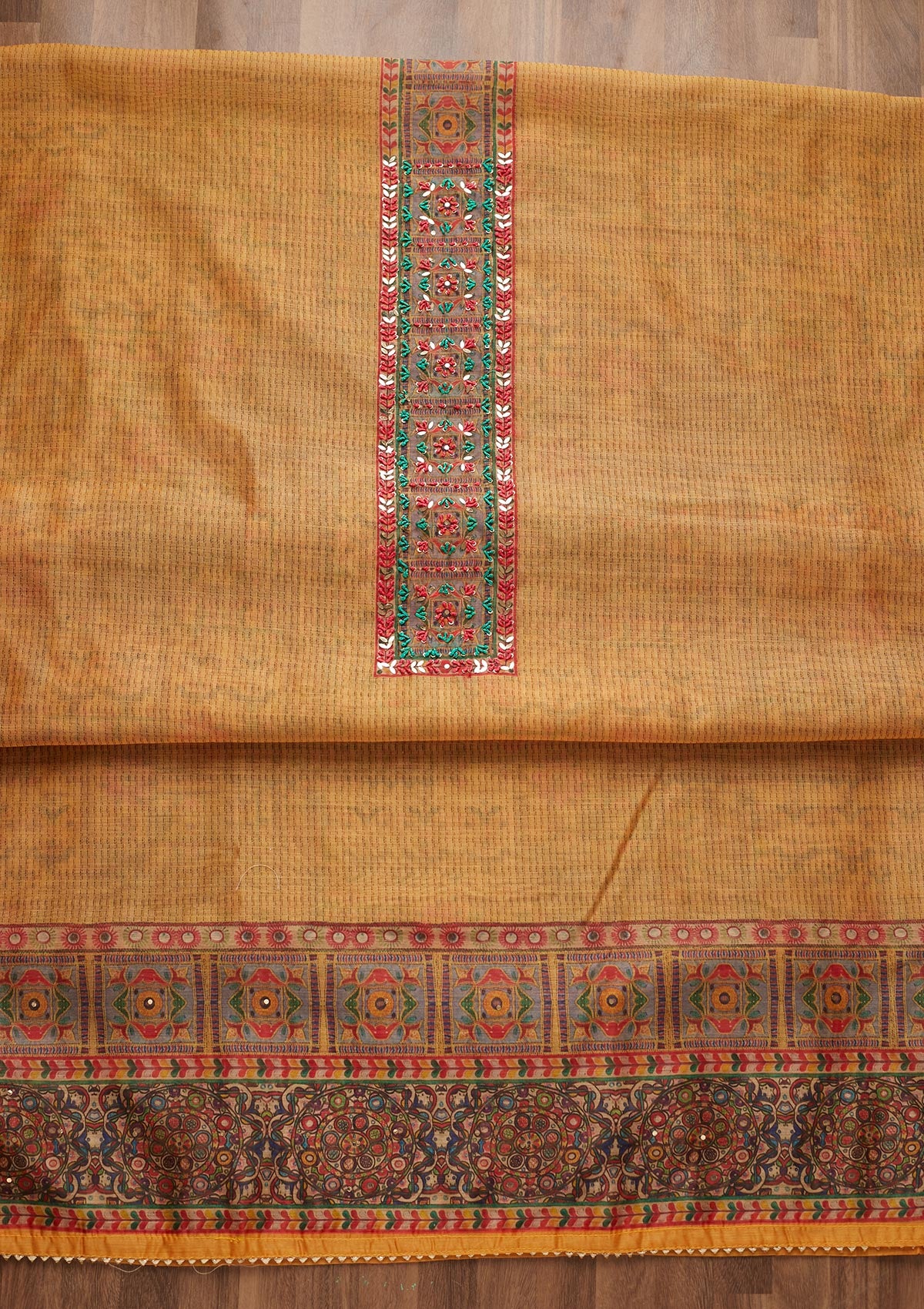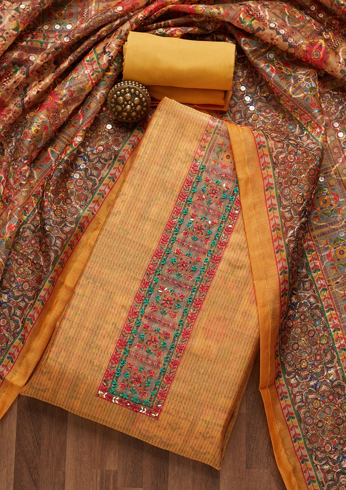 Mustard Sequins Chanderi Unstitched Salwar Suit