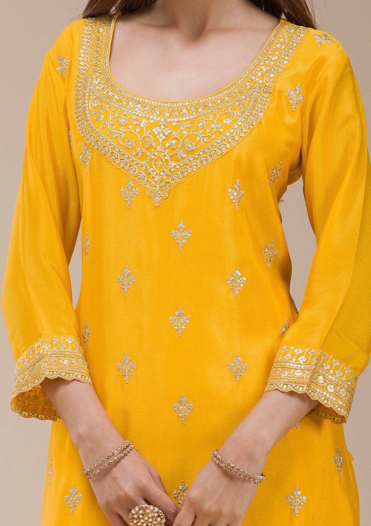 Mustard Yellow Zariwork (Gold) Chinon Readymade Sharara Suit