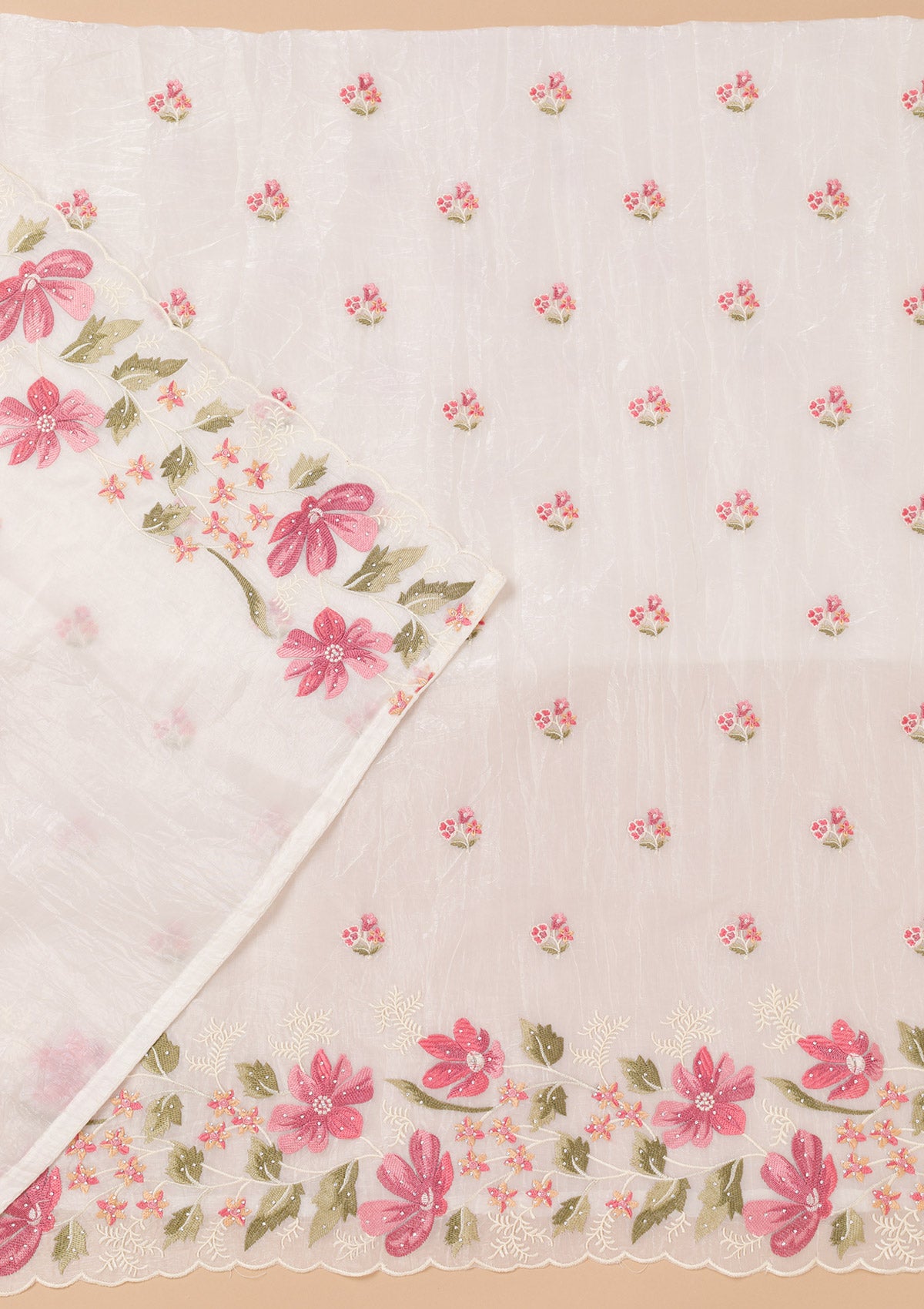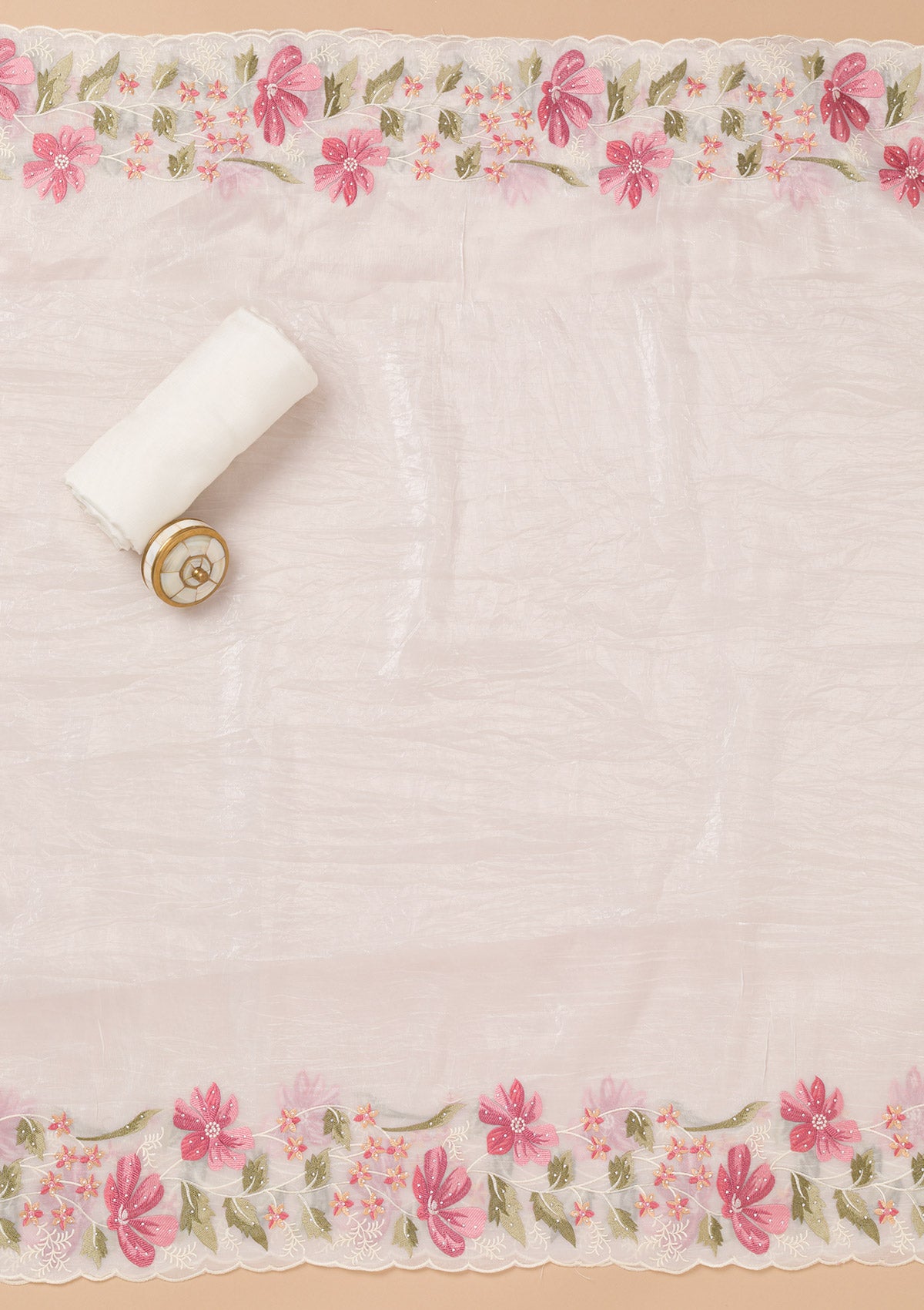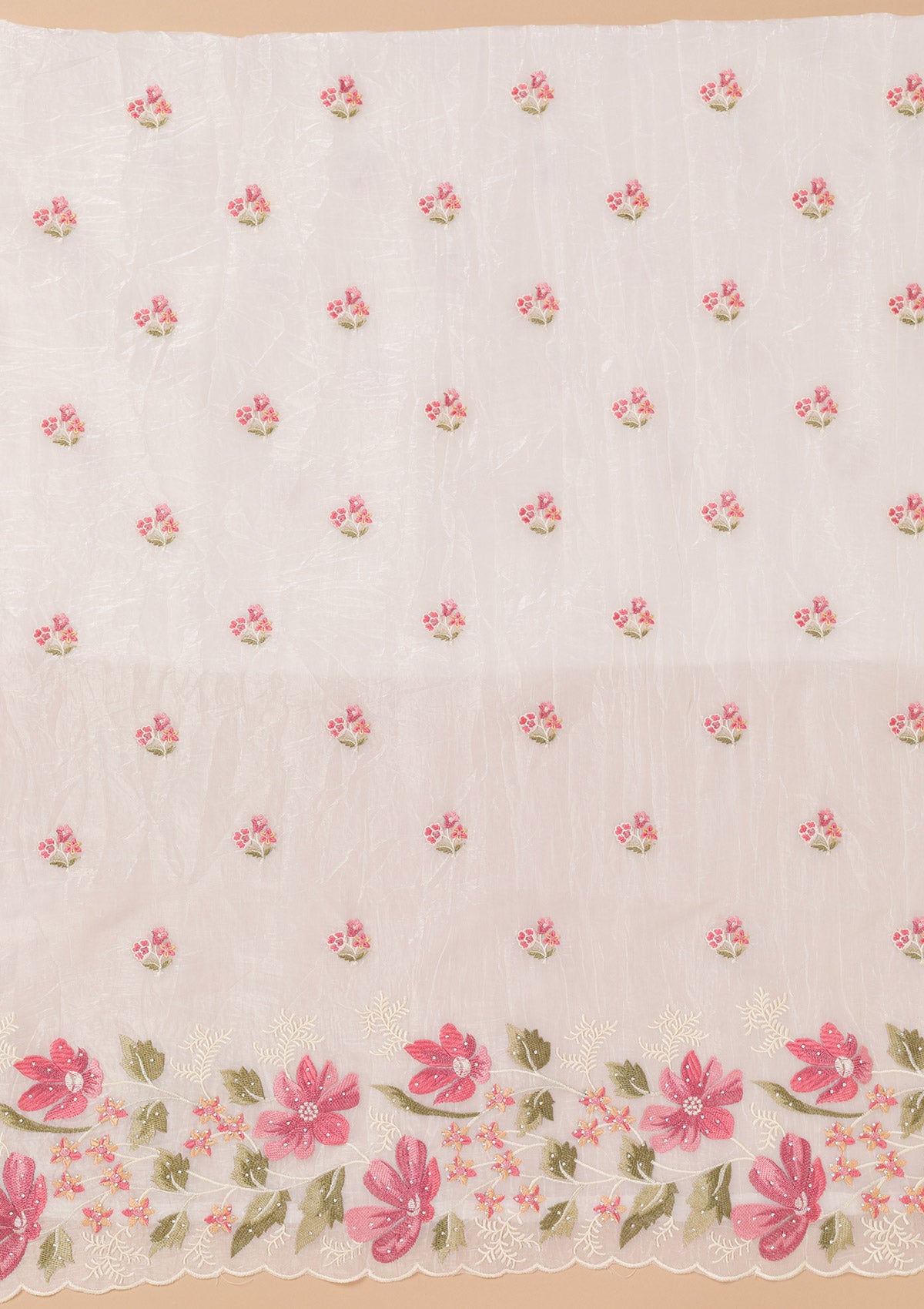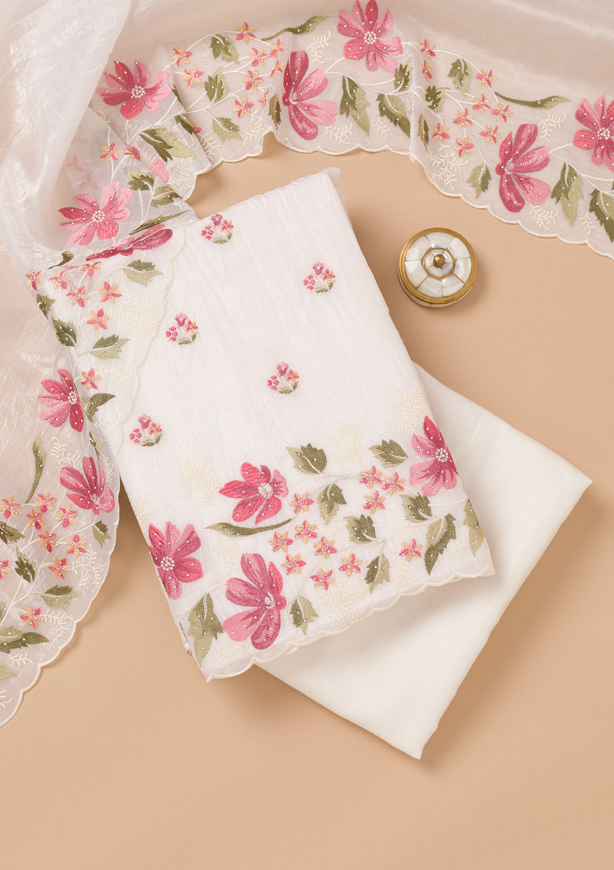 Unleash your creativity with Koskii's vibrant and spirited white georgette salwar suit, ready to be tailored just for you! This lively piece dazzles with exquisite floral threadwork embroidery, setting your style ablaze with its expressive charm. Dive into the elegance of airy georgette, and let each thread tell a tale of timeless beauty.
