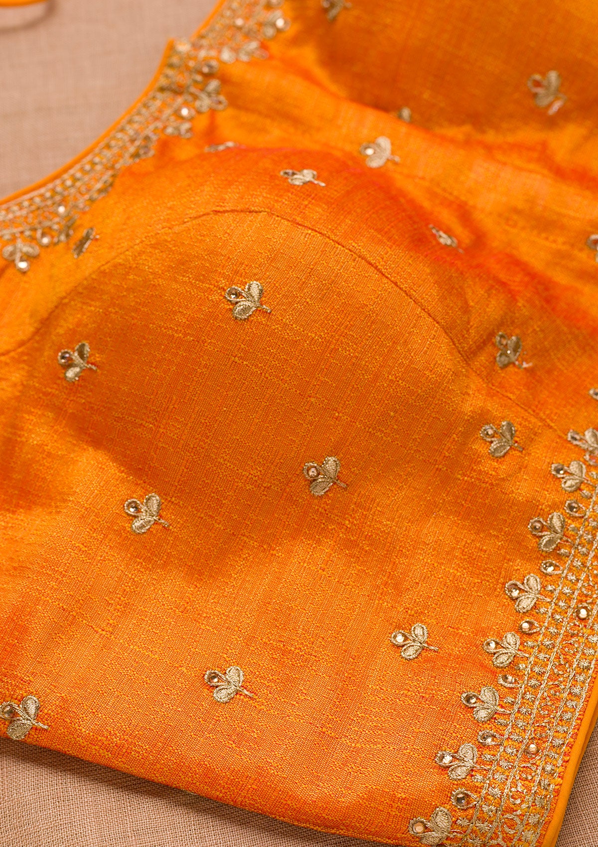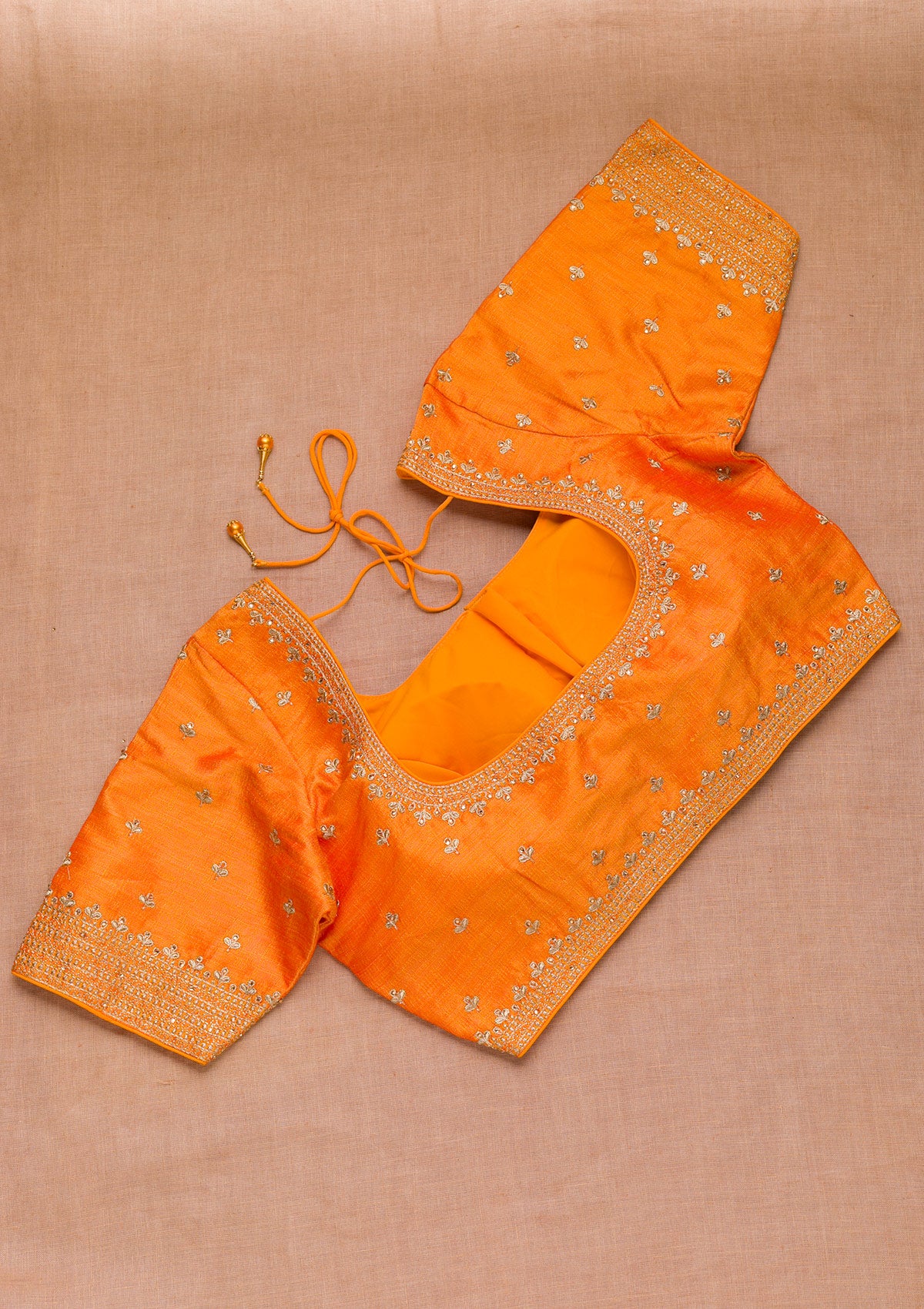 Orange Ready to Wear Padded Blouse in Raw Silk fabric The Zariwork Blouse has a U Neckline Comes with the Koskii promise of premium quality.