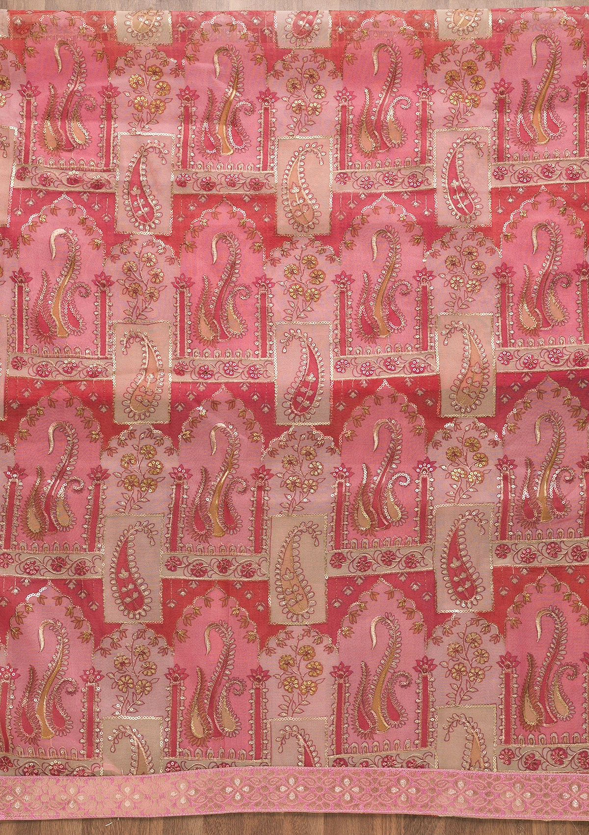 Dive into a world of playful elegance with Koskii's Pink Tissue Salwar Suit, twinkling with sequins that dance under the light! This spirited, unstitched ensemble invites you to weave your personal style into its vibrant, airy fabric, perfect for crafting a look that’s as unique as you are. Let each sequin tell a story of joy and celebration, making every moment memorable.