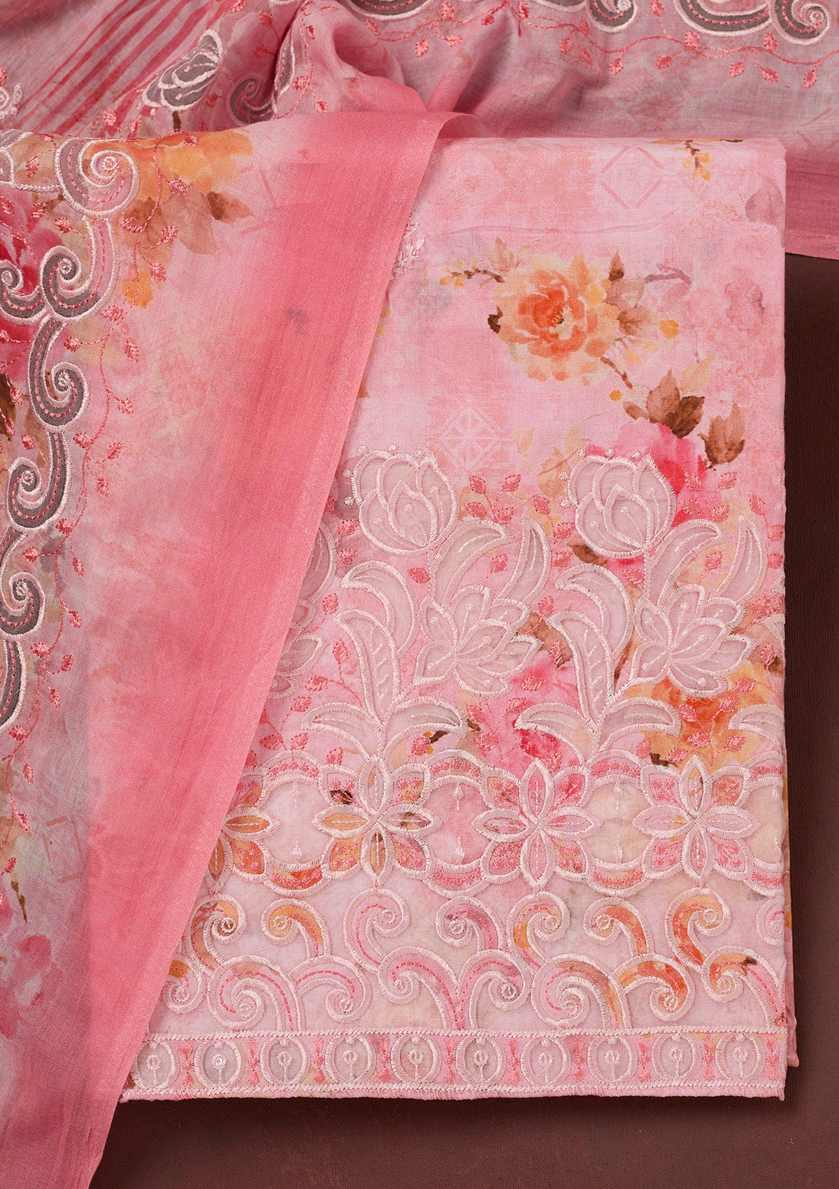 Pink Salwar Suit in Linen fabric The Salwar Suit is embellished with Threadwork embroidery Accompanied with a bottom and dupatta Comes with the Koskii promise of premium quality.