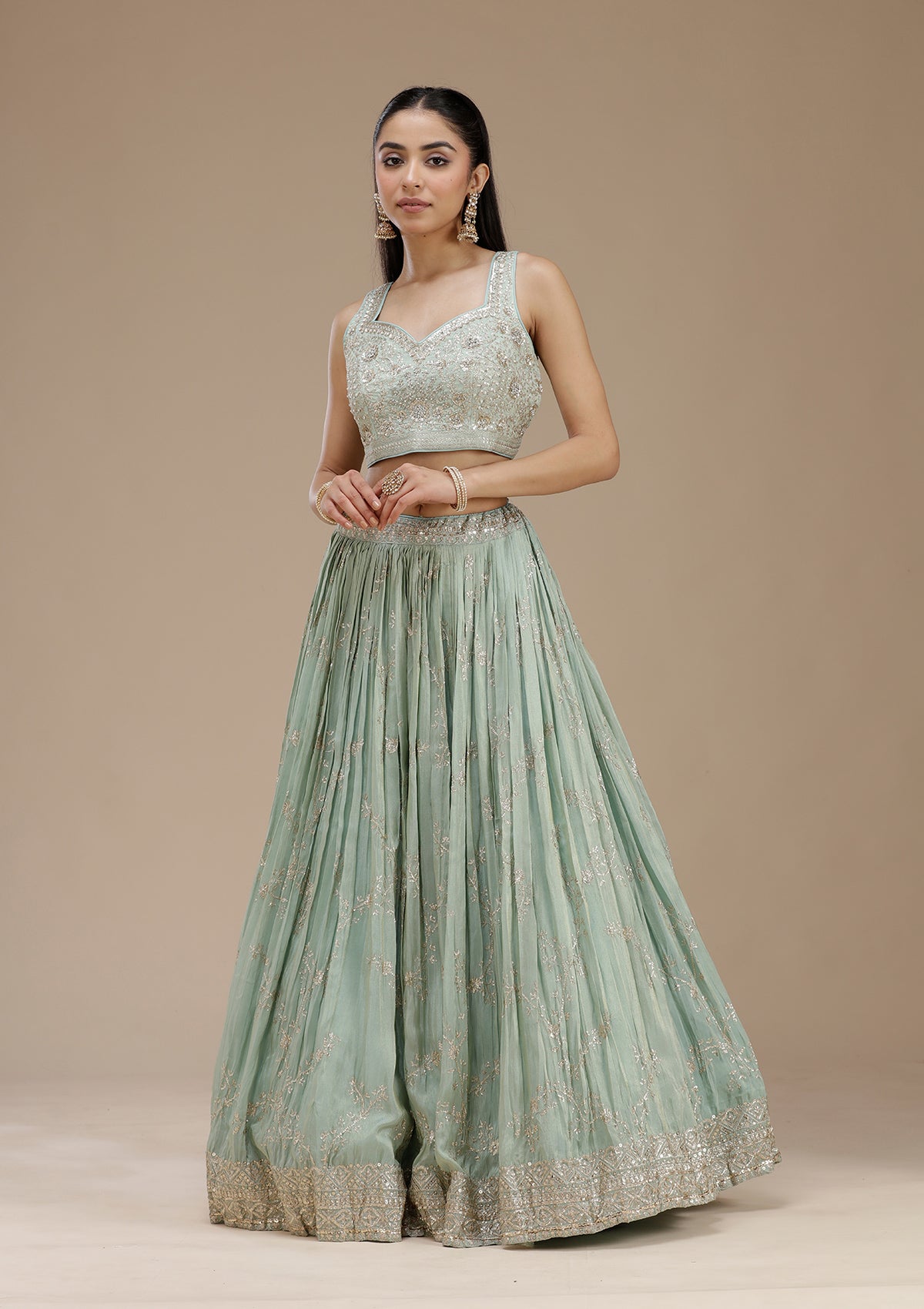 Pista Green Sequins Shimmer Readymade Lehenga