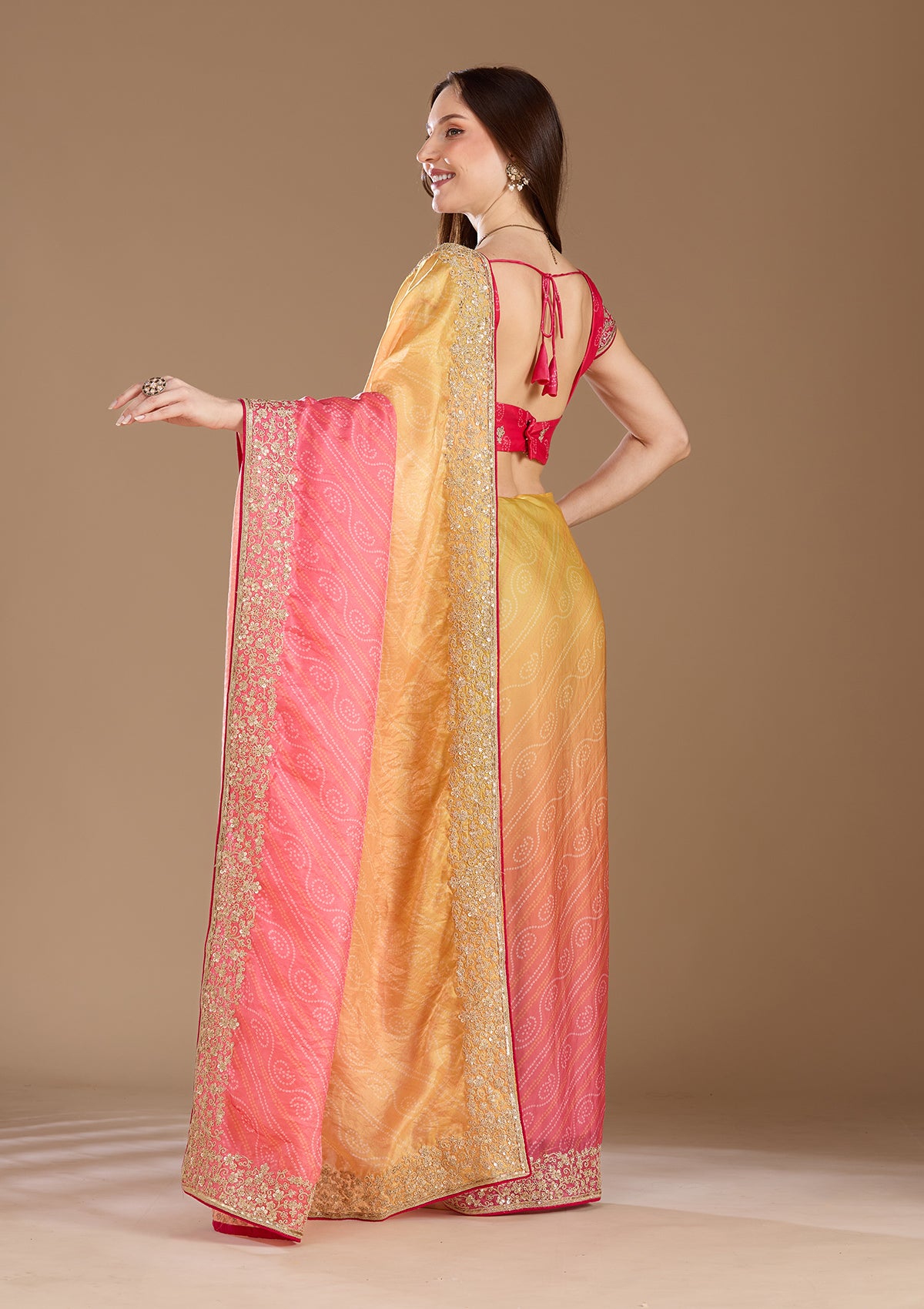 Rani Pink Cording Chiffon Saree