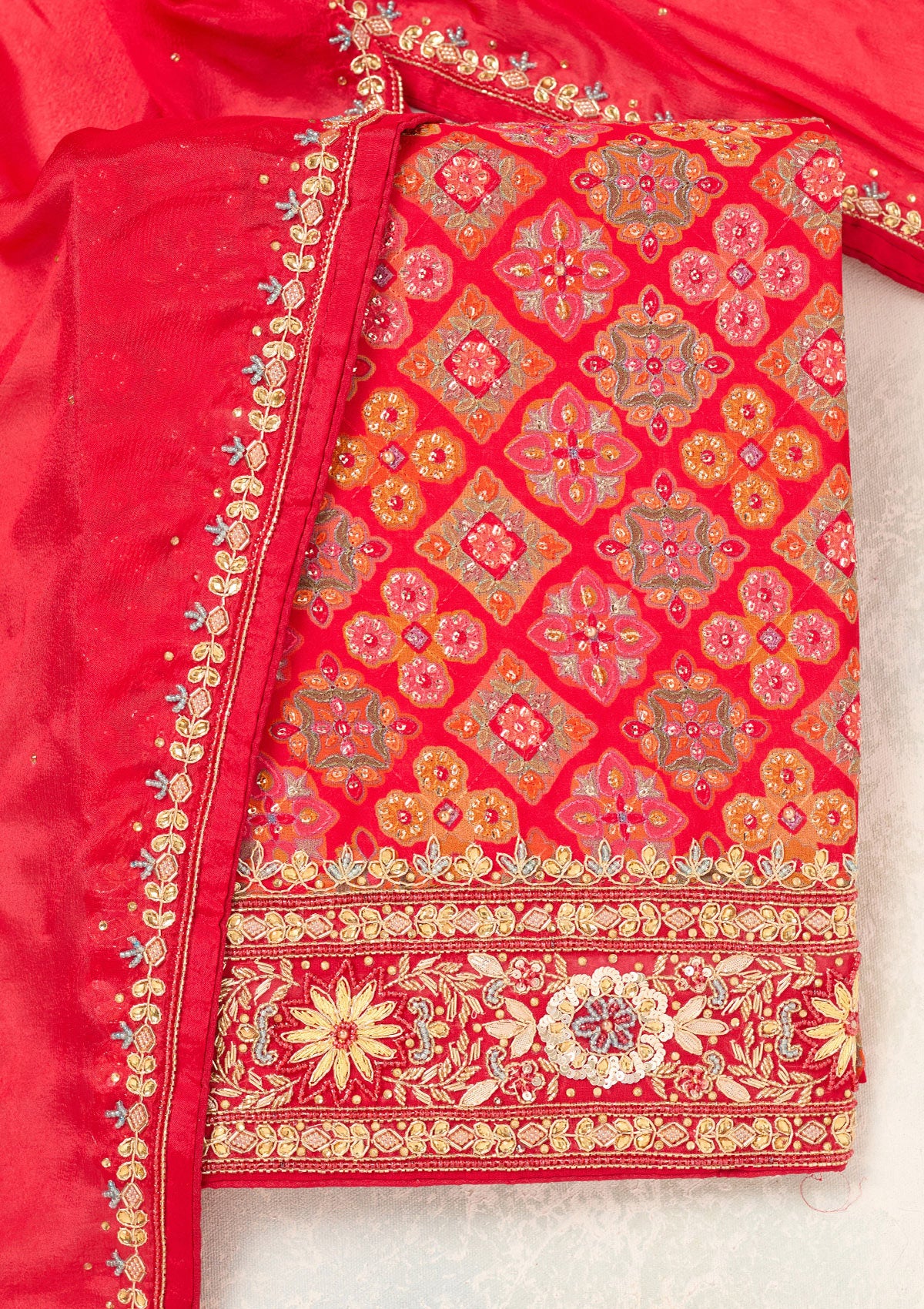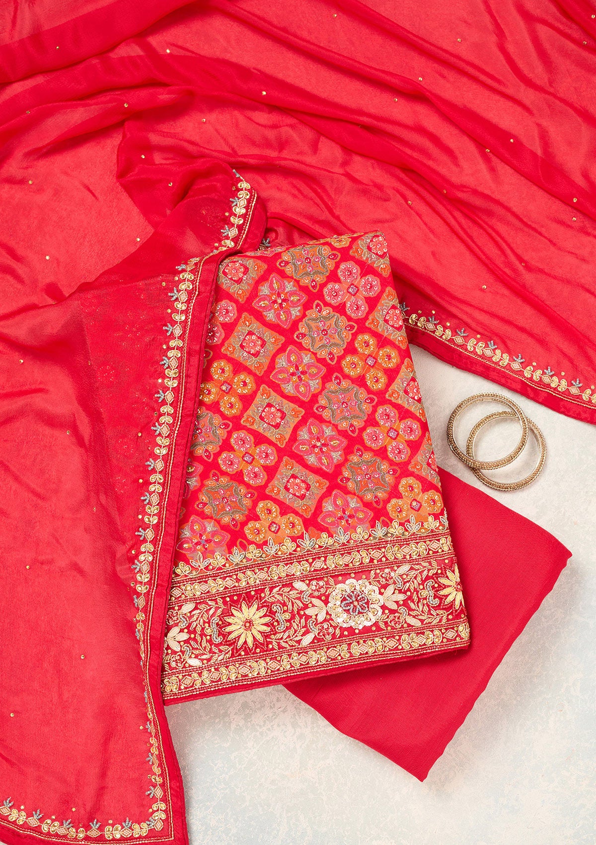 Red Cutdana Georgette Unstitched Salwar Suit