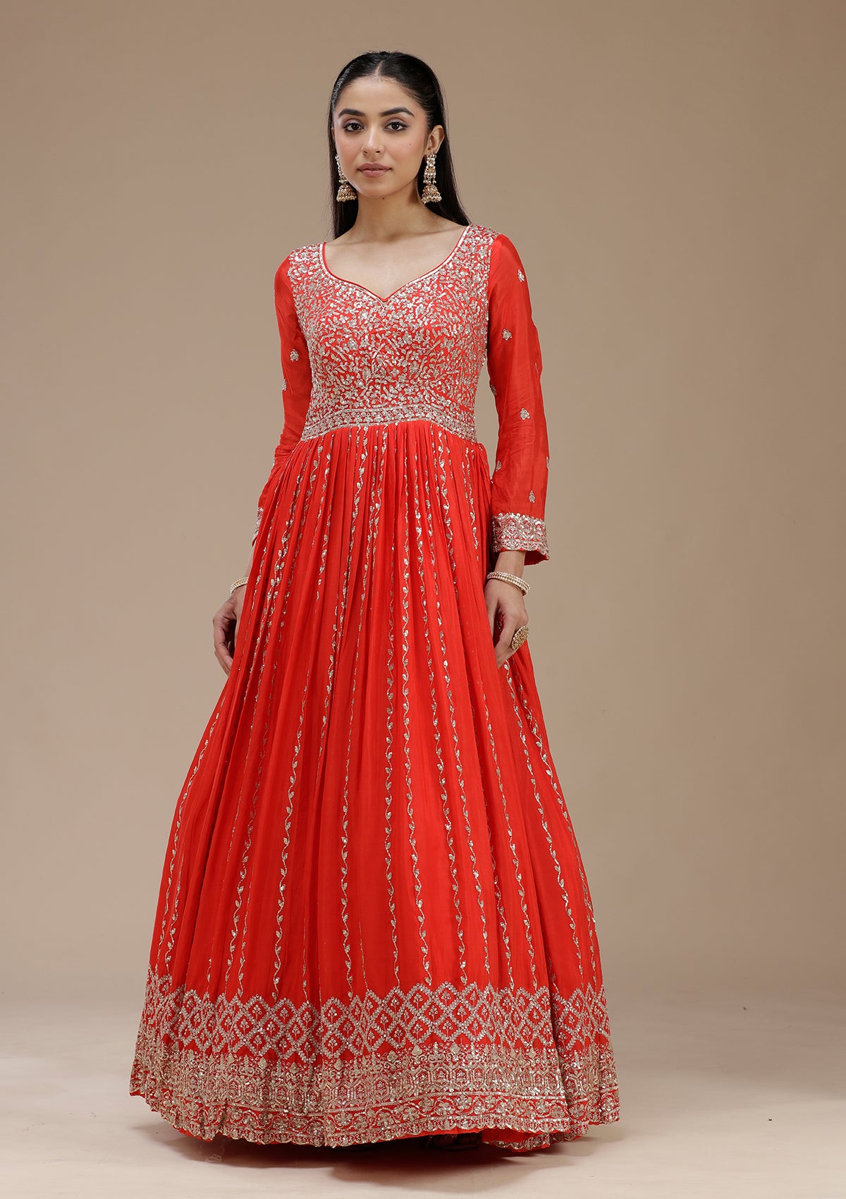 Red Salwar Suit in Crepe fabric. The Salwar Suit is embellished with Sequins embroidery. Accompanied with a bottom and dupatta. Comes with the Koskii promise of premium quality.