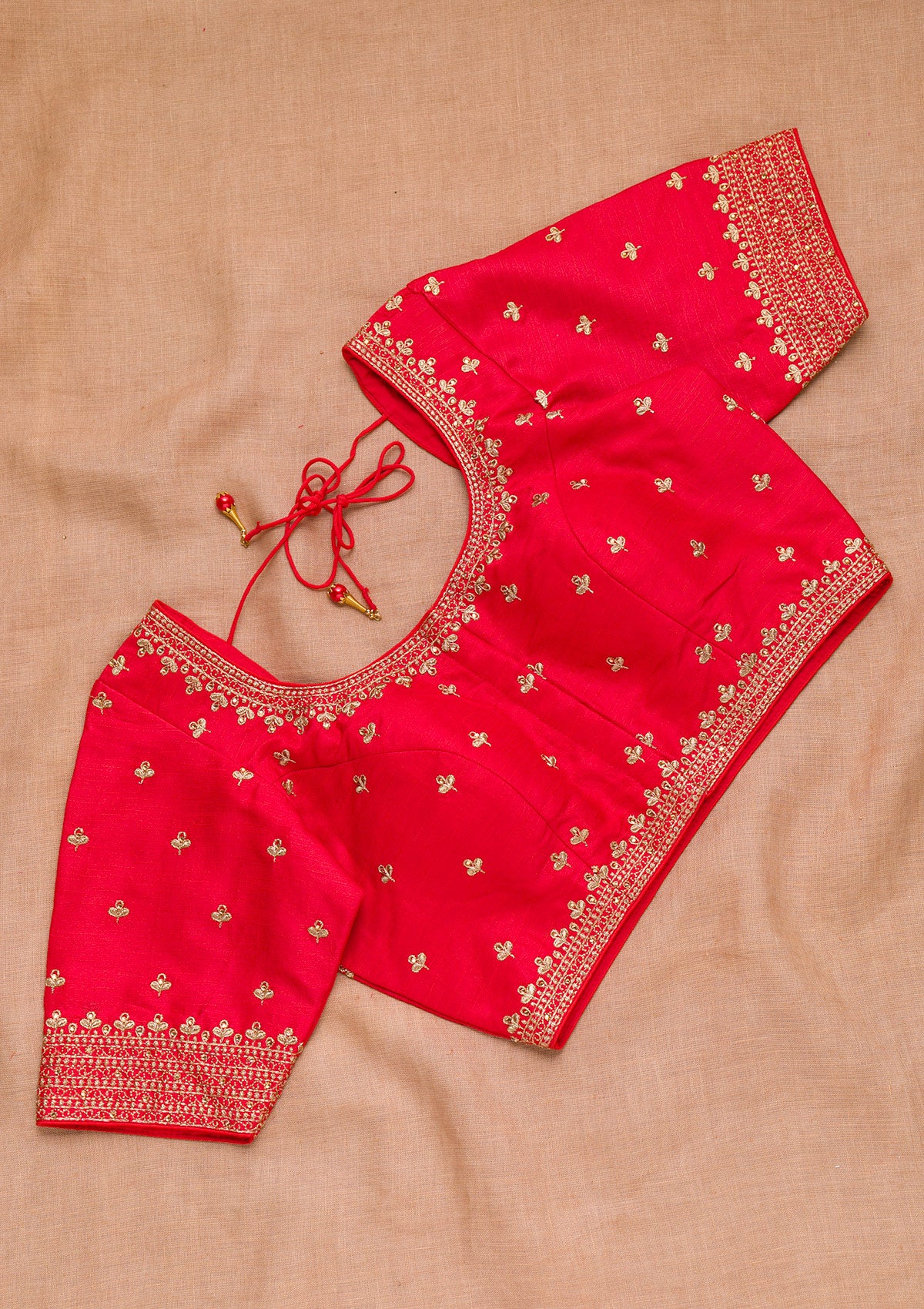Red Ready to Wear Padded Blouse in Raw Silk fabric The Zariwork Blouse has a Deep V Neckline Comes with the Koskii promise of premium quality.