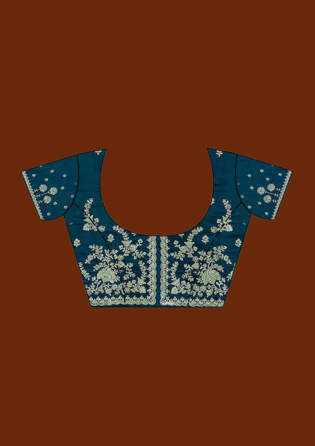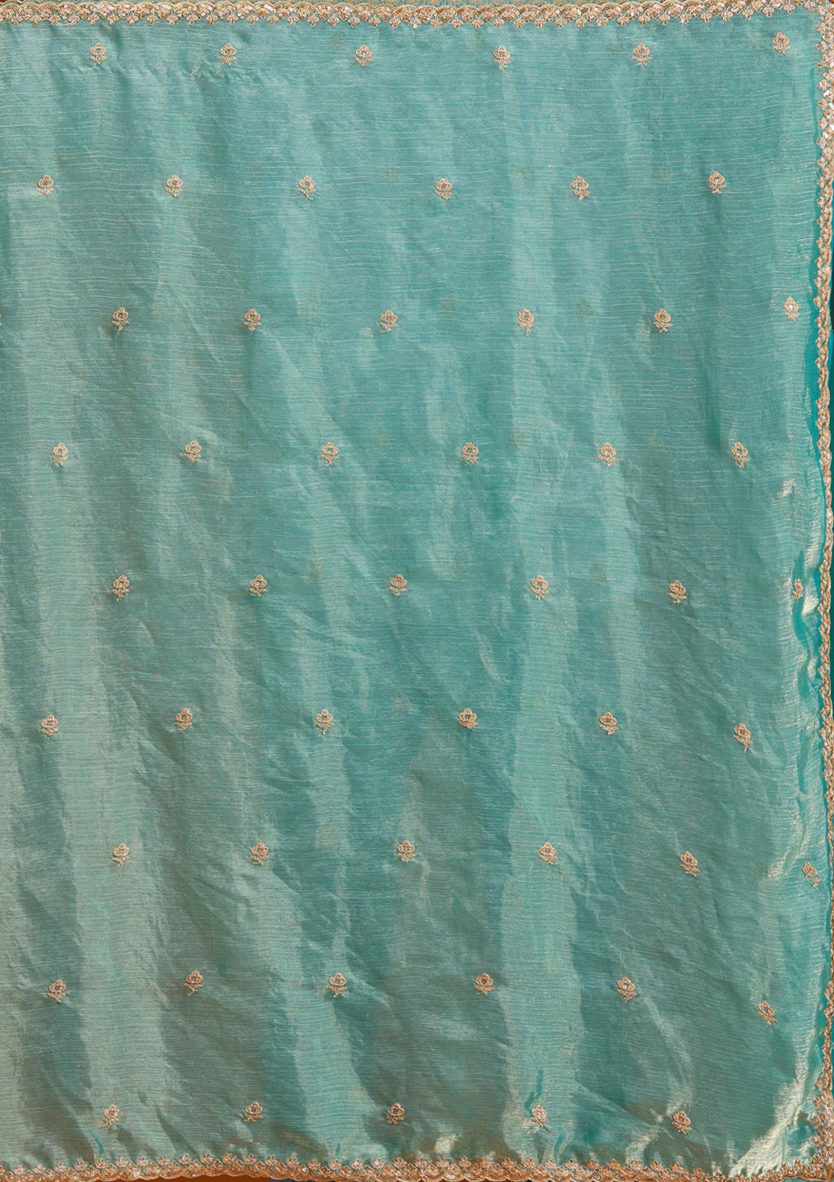 Sea Green Saree in Tissue fabric. The Saree is elevated with Cording embroidery. It comes with an Unstitched blouse. Comes with the Koskii promise of premium quality.