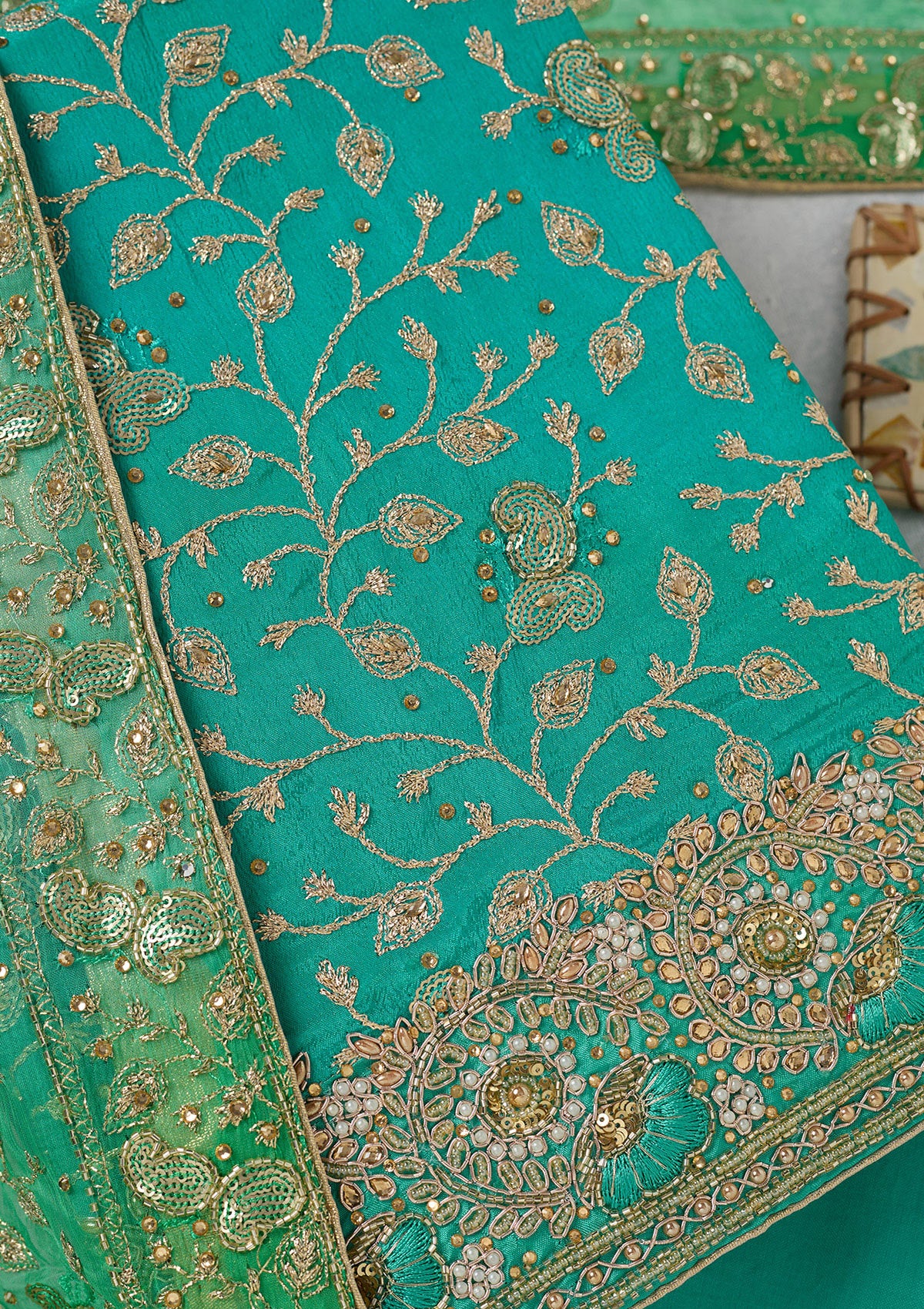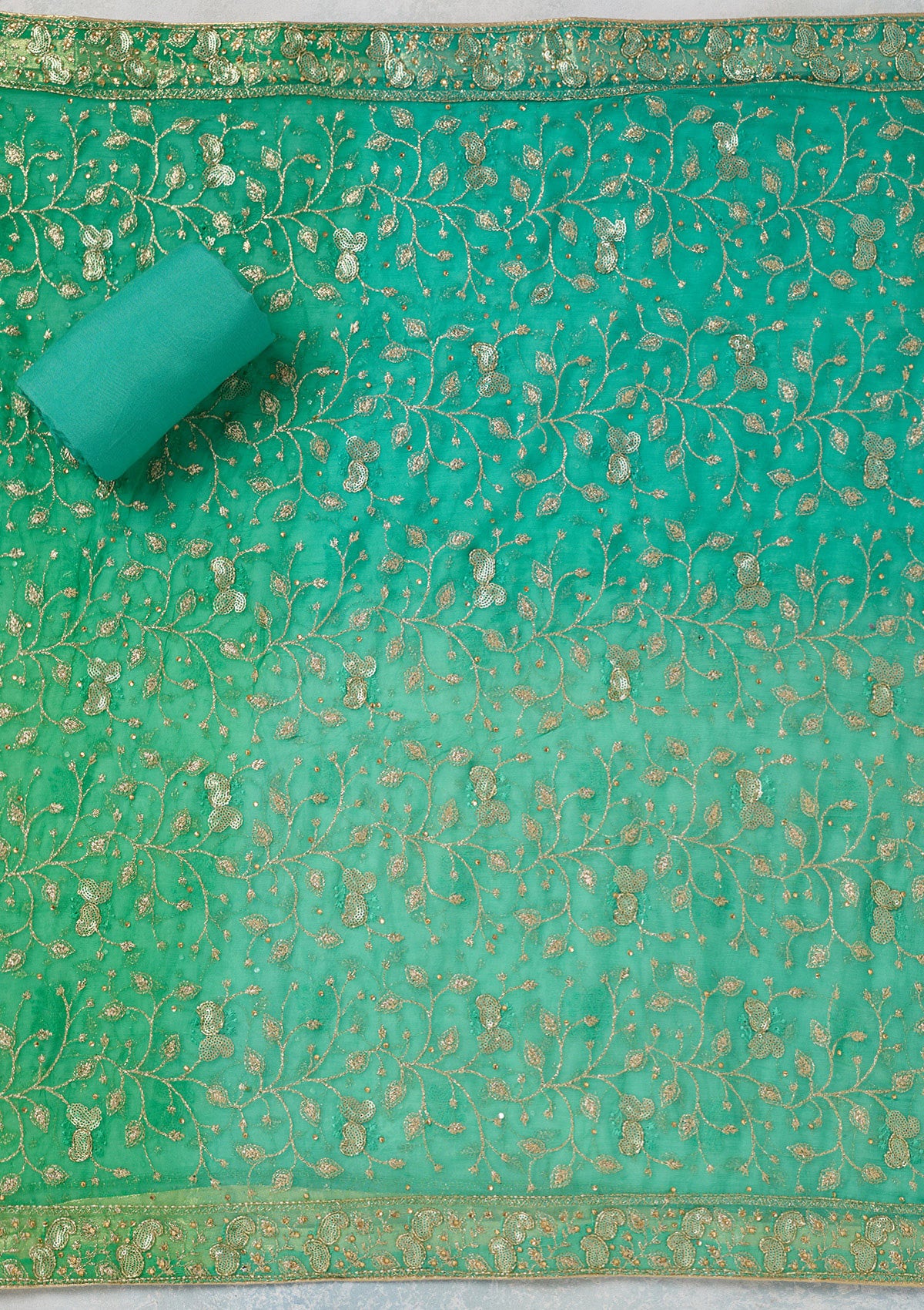 Sea Green Zariwork Georgette Unstitched Salwar Suit