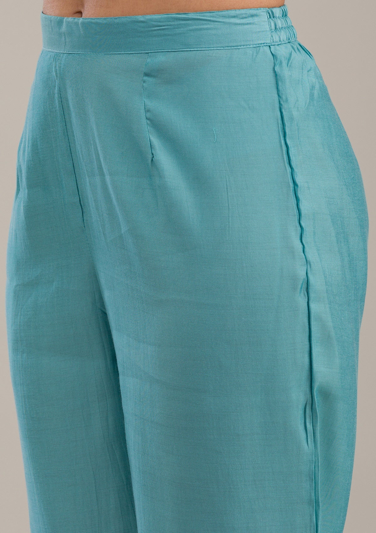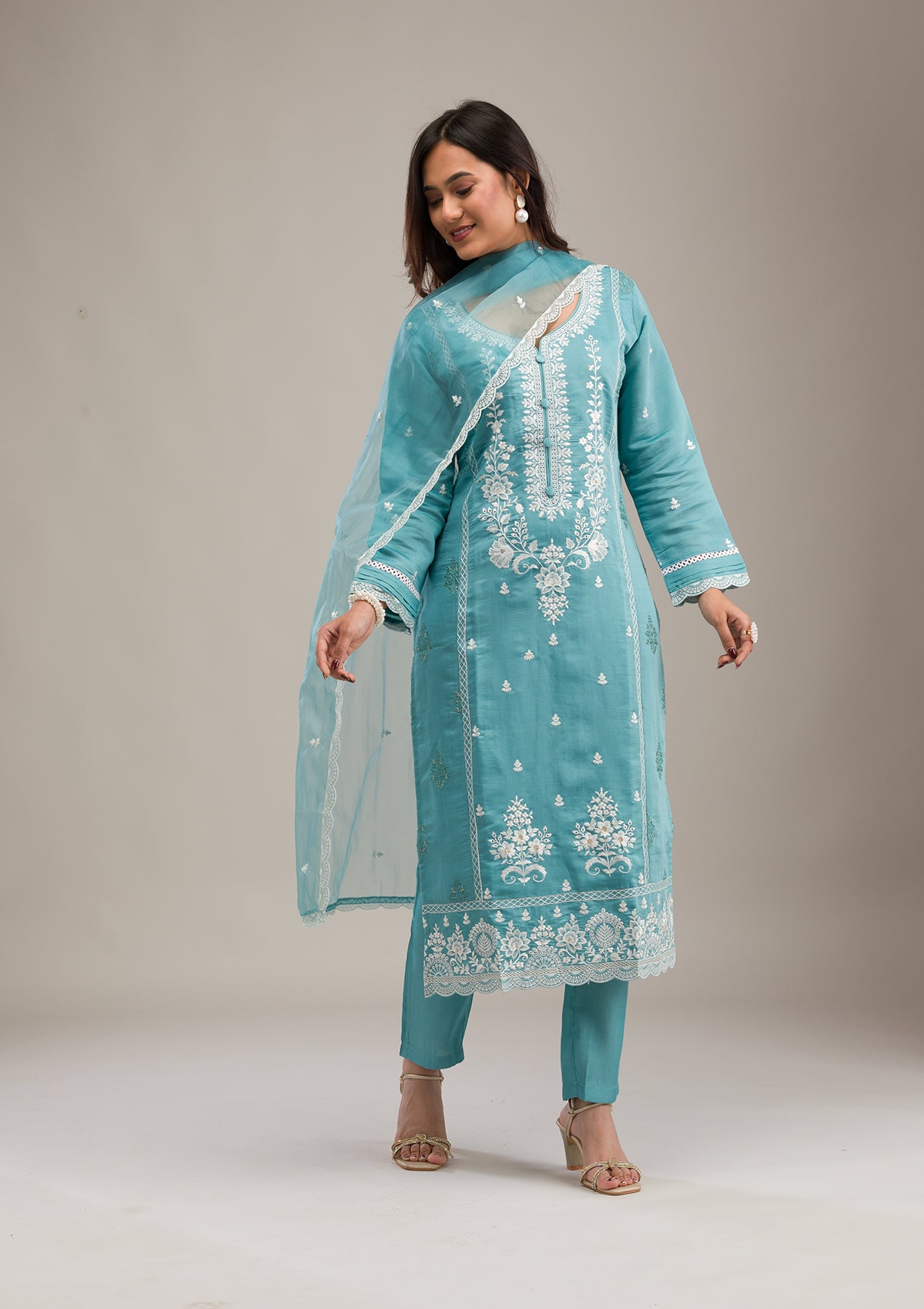 Step into a world where elegance meets playfulness with Koskii’s Aqua Salwar Suit, tailored from luxurious soft raw silk that promises a smooth touch and a flawless fall. Embellished with intricate threadwork that adds a whisper of tradition to its modern silhouette, this readymade ensemble is perfect for making a vibrant style statement. Let your spirit dance in the vivacious hues and exquisite craftsmanship of Koskii, where every outfit celebrates the joyful essence of you!.