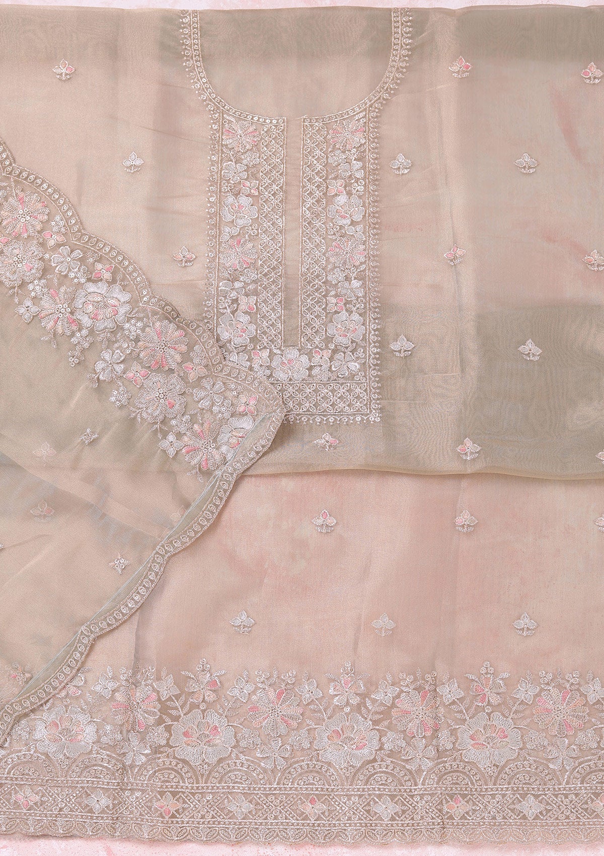 Turquoise Blue Zariwork (Gold) Tissue Unstitched Salwar Suit